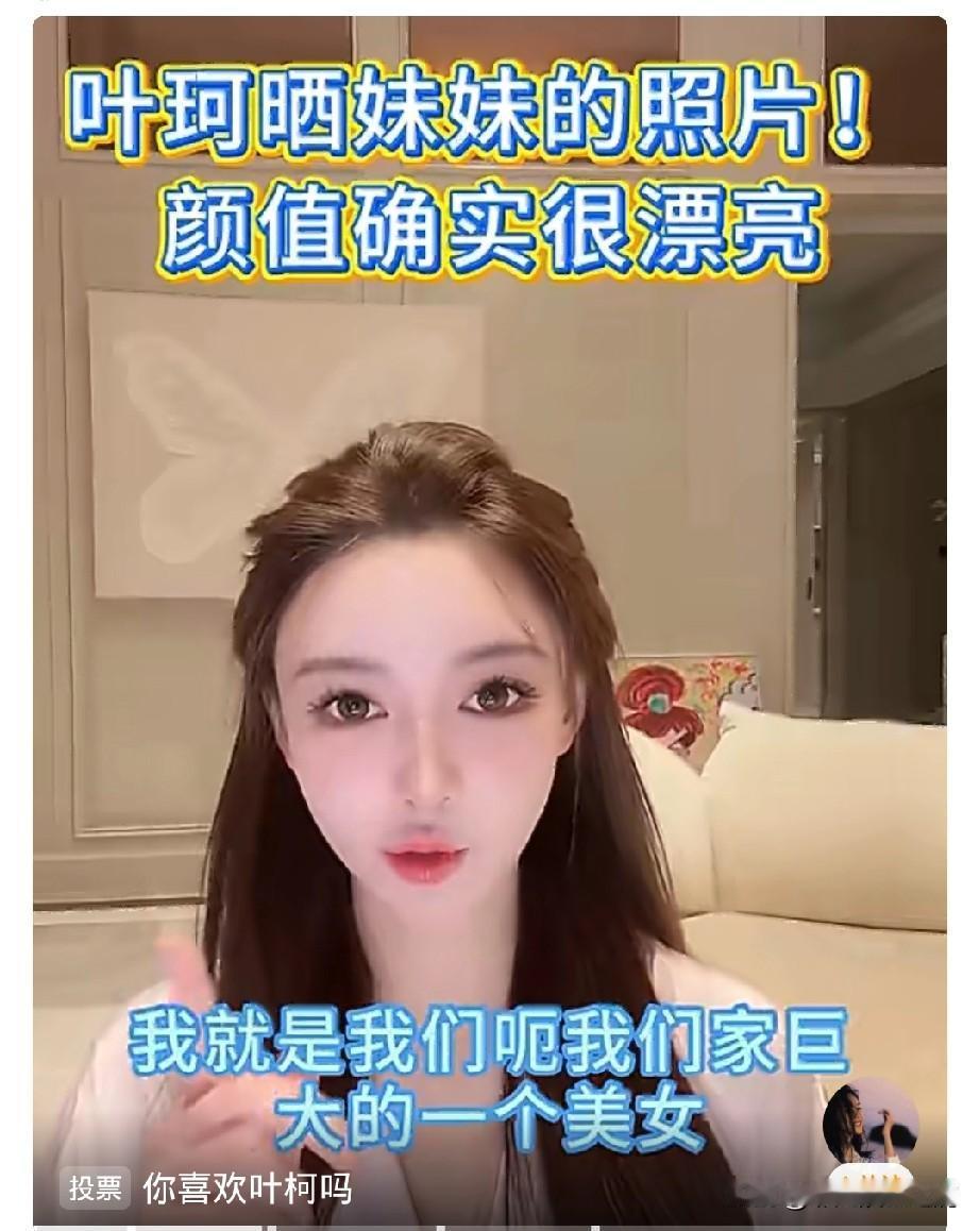 叶珂说她妹妹在一个很大的平台工作,现在每个月工资挺高的,之后可能也会慢慢的想买名牌。 要是我妹妹现在想买奢侈品,我不会阻止她,毕竟这是一个阶段,女孩子总会有想买买买的阶段。但等真正长大就会明白,哪些地方该花钱,哪些地方不该花。就像我,家具和床垫我会买好的,其它的叶珂说就不追求了。 叶珂说她也会给妹妹提建议,让她别买这些。“哎,我妹可漂亮了,给你看看,她长得巨美,是我们家超级大美女。” 叶珂表妹真就是超级大美女,你们都想象不到她有多美。看,这就是表妹,美不美?是不是特别美?叶珂很美了,没想到表妹就是超级大美女。
