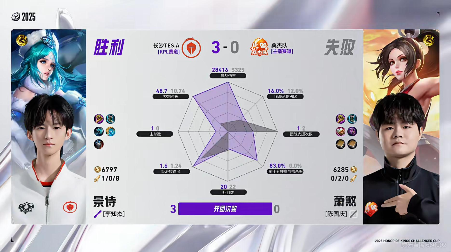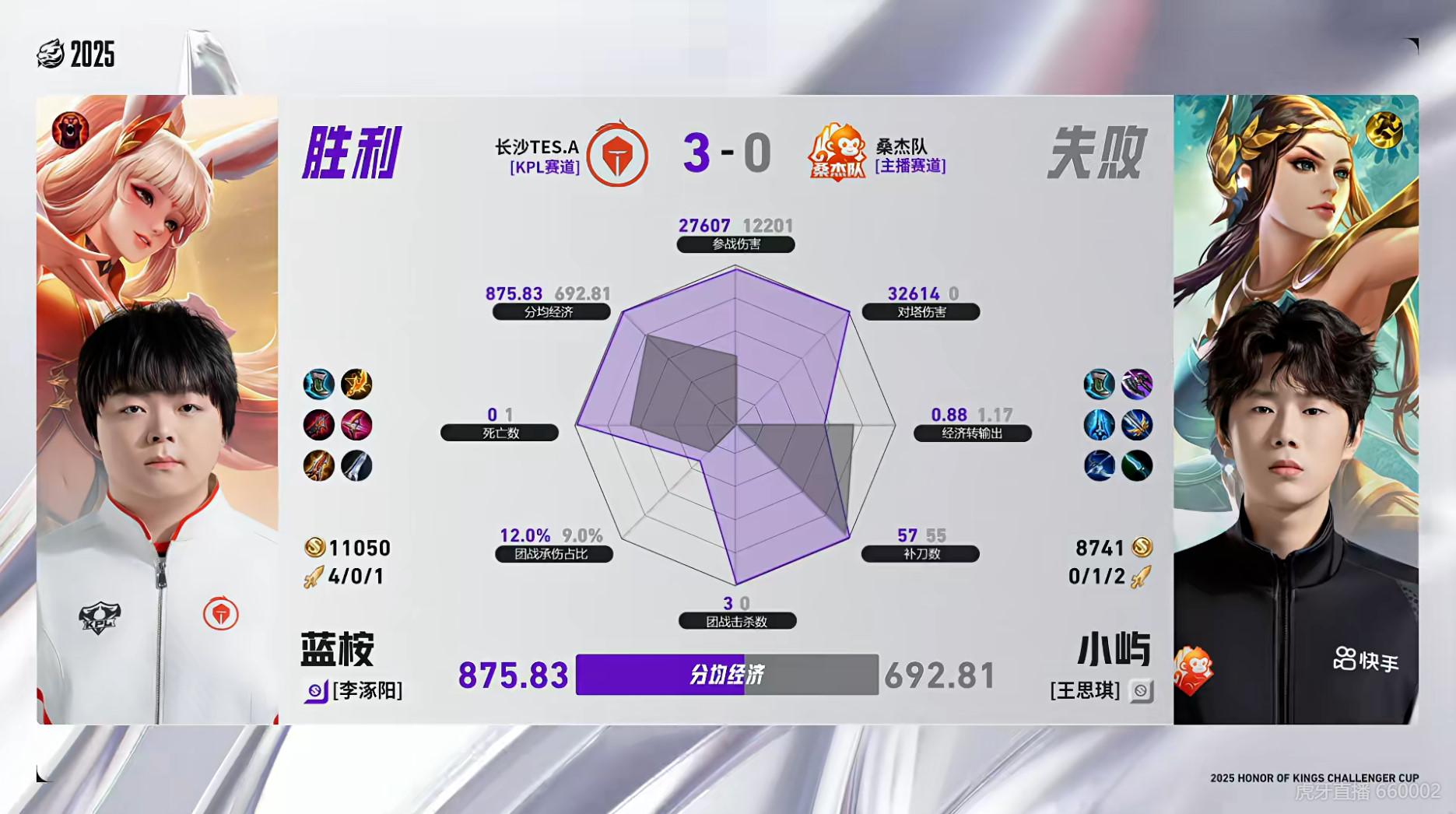 虎扑12月10日讯TES.A/桑杰队第3局数据对比:TES双C几乎全包桑杰队双C