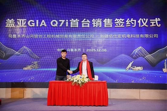 新疆矿产资源丰富,新疆盟创作为扎根新疆二十余年的本地企业,拥有完善的销售和服务团队,累计服务客户超过200家。发布会现场,盖亚(南京)矿山设备有限公司总经理谷晓坤将盖亚Q7i全国独家总代理授予新疆拓岩盟创,并举行服务认证授权仪式,标志着双方战略合作全面升级。现场还举行了盖亚GIAQ7i首台销售签约仪式。