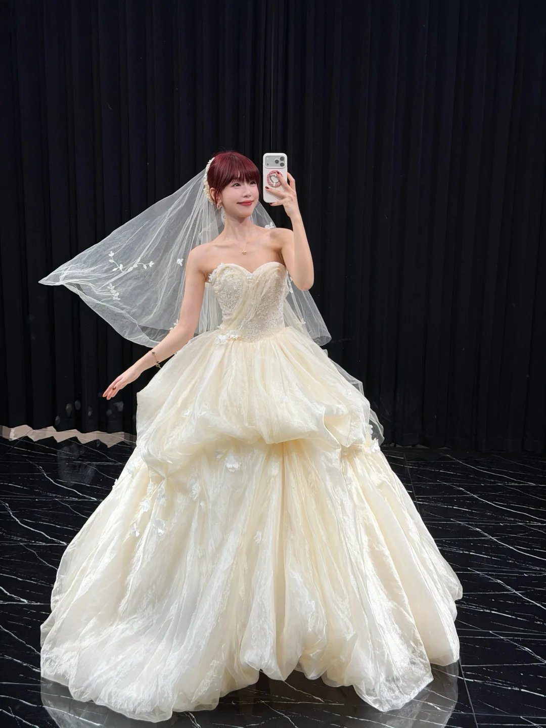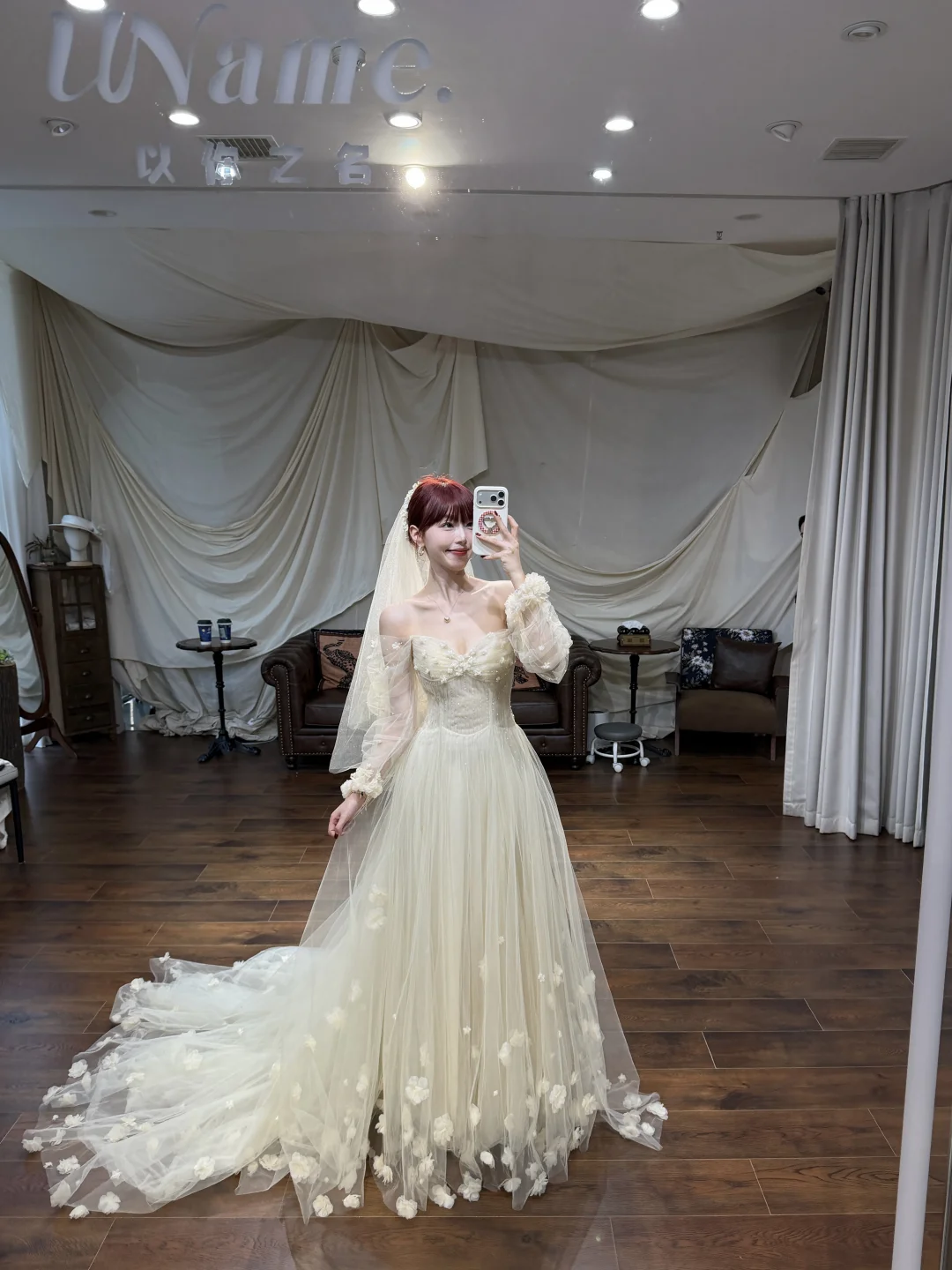 试到漂亮婚纱真的会好开心!! 这次试的好几件都好喜欢呀[色色R][色色R] 余爱好仙好甜!每一件都想要! 以你之名太多好看的款了!根本试不完!