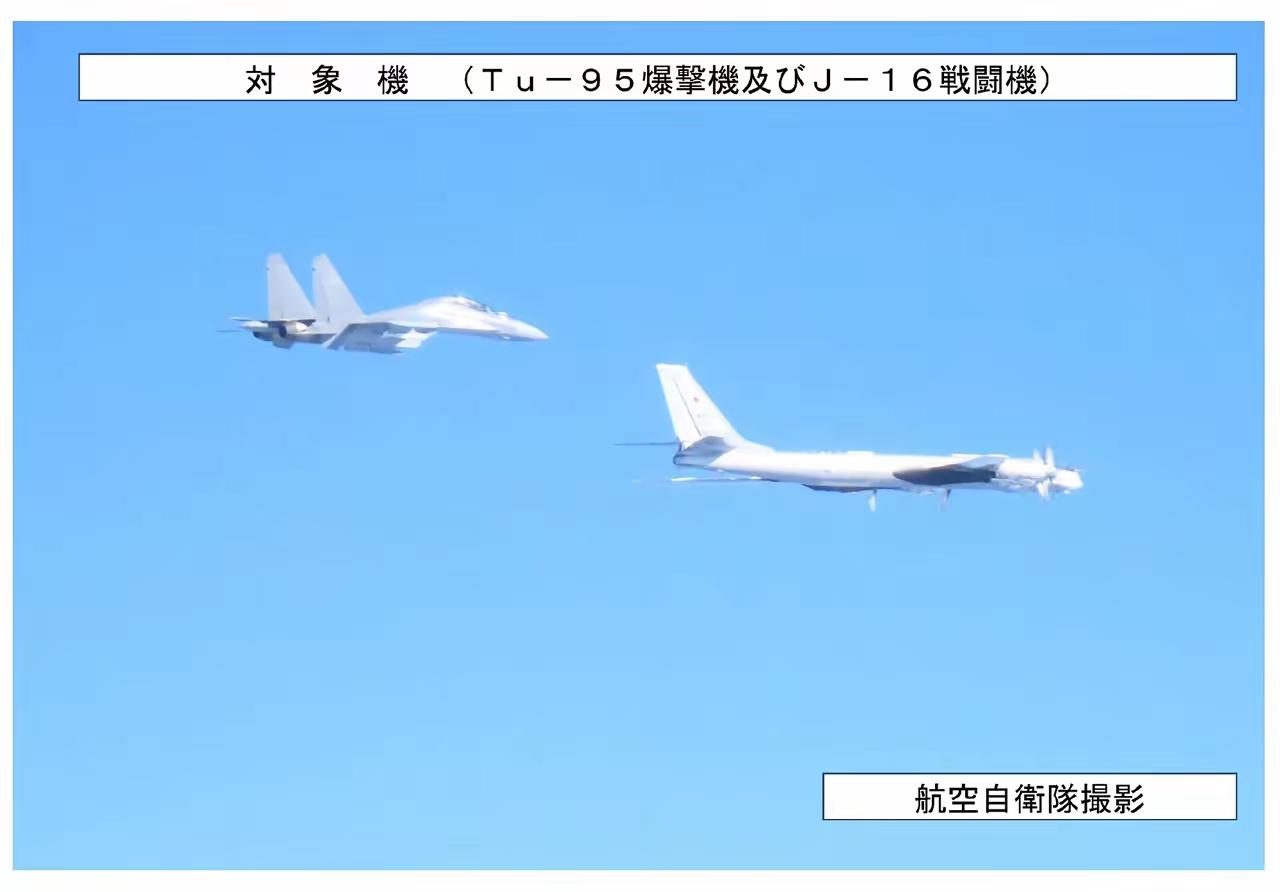 中国歼-16对决日本F-35A!中俄联合巡航中的空中较量 当地时间2025年
