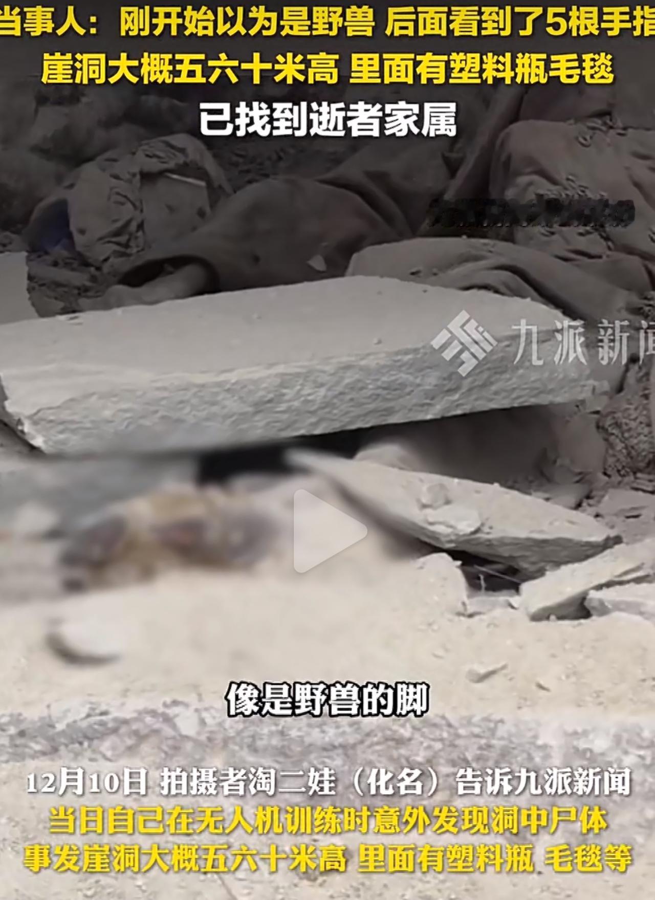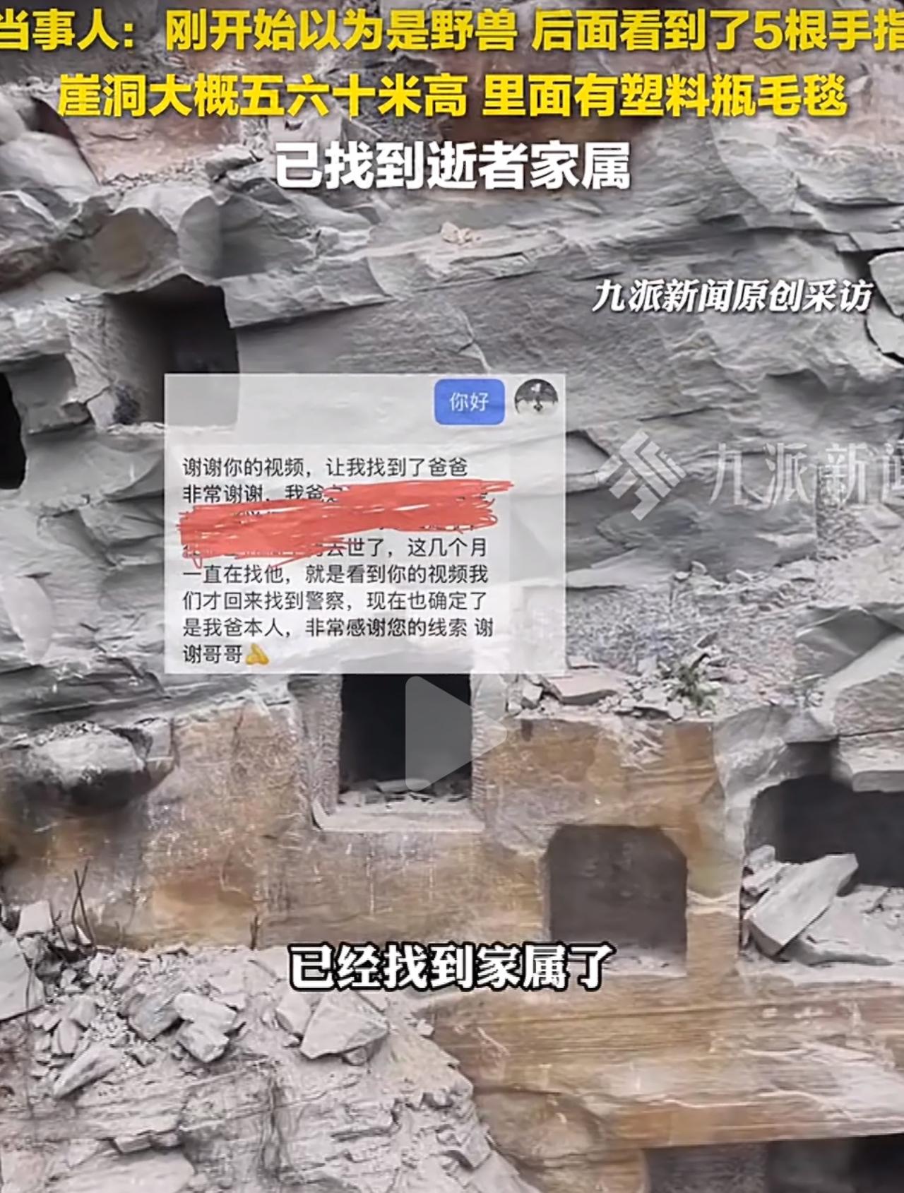 真的太让人唏嘘了,一次平平无奇的无人机训练,居然撞破了崖洞里的一桩悲剧,也给一个熬了五个月的家庭,终于盼来了迟来的答案。 重庆飞手淘二娃在山里练无人机的时候,无意间瞥见五十多米高的崖洞里,蜷着个黑乎乎的东西。一开始还以为是死了的野兽,可把画面放大一看,他瞬间浑身发僵、心里一紧—— 那哪儿是野兽啊,分明是人的手指头、脑袋,是一具干得不成样子的遗体。旁边还扔着几个破塑料瓶、一条褪得没颜色的毛毯,看着就心里发堵,说不出的难受。他也不敢多拍,更不敢耽搁,赶紧就报了警,手心都冒冷汗,又慌又怕——既怕惊扰了逝者,坏了规矩,又盼着能早点有个结果,好歹给逝者、给家里人一个交代。 没过多久,警察、法医还有消防员就赶来了,把这险峻的现场给封了起来。经过检验,这具遗体是因为洞里干燥通风,自然风干的,排除了他杀,而现场找到的农药瓶,也让人心里咯噔一下,说不出的沉重。直到官方通报出来,大家才知道,逝者是59岁的曾某,家在石柱县,生前有抑郁症,今年7月份就离家失联了,一失踪就是小半年。 这段视频传到网上之后,曾某的儿子很快就联系上了淘二娃,就一句话:“谢谢你让我找到爸爸”,短短几个字,藏着这五个月来的煎熬、崩溃,还有终于找到亲人的释然。淘二娃看着这句话,心里也五味杂陈,他说,或许这就是冥冥之中的缘分,既让逝者彻底解脱了,也让家属不用再漫无目的地寻找,能稍稍心安。 说实话,这次的事,也让人看清了无人机的两面性。一方面是真的管用,这种人根本上不去的险峻崖洞,无人机一飞就能拍到,给失踪人员搜救多了个新法子,挺有公益价值的;但另一方面也有争议,有人说拍逝者是不是侵犯隐私了,也有人说这是在消费死亡。 但说实话,比起吵这些,我更揪心的是,要不是这次碰巧拍到,曾某恐怕就一直藏在这崖洞里,没人发现,就这么悄无声息地没了。这事儿也越想越不是滋味,那些有抑郁症的人,是不是真的没被我们好好放在心上啊?失踪人口的追踪,还有一些边缘群体的救助,是不是还能再完善一点?愿逝者安息,也愿每个走失的人都能被找到,愿这样的悲剧,能少一点,再少一点。崖洞 男子飞无人机时在崖洞发现干尸 论无人机的作用