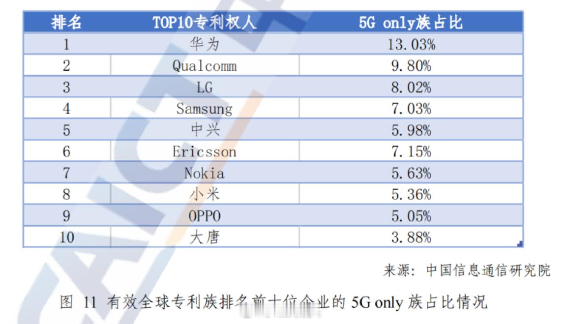 OPPO向奥迪公司许可包含5G在内的蜂窝通信标准必要专利。5G only专利族全球占比,华为、中兴、小米、OPPO和大唐都在前10名,点赞~