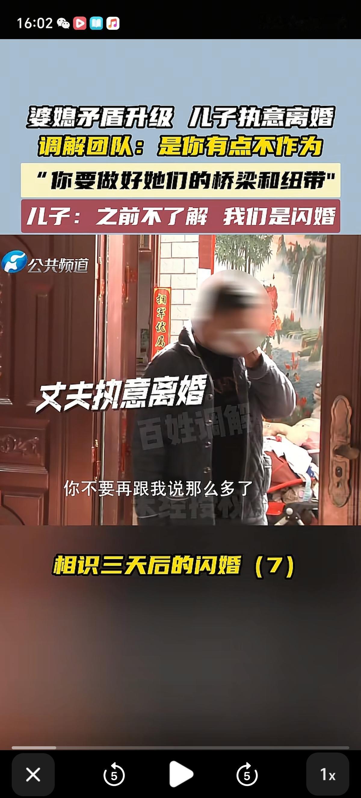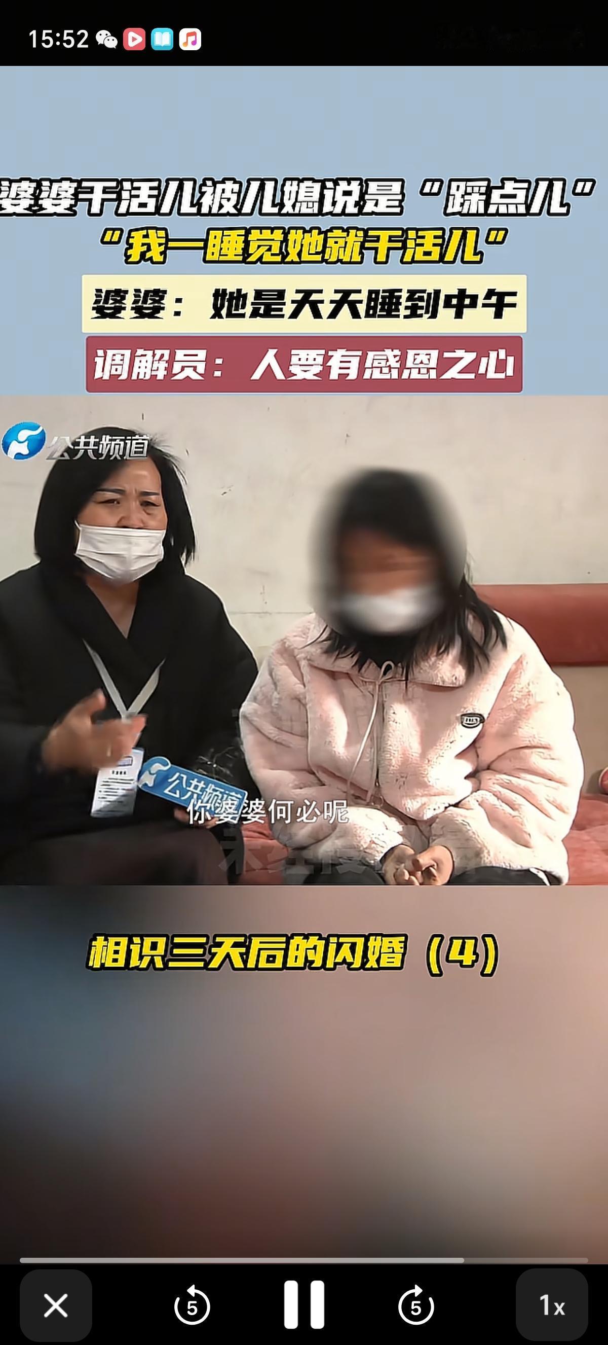 女子带着跟前男友的儿子远嫁给了认识才3天、见过4次面的现任丈夫,直言婚后两年婆婆看自己不顺眼,一点不退让,受足委屈。 29岁女子是从贵州远嫁到河南驻马店的,儿媳妇说自己一开始委屈,不说话,婆婆总找她麻烦,自己很生气。婆婆管的多,日子不好过。一点不顺着婆婆的意思,婆婆就找事情,什么爹呀妈呀拿出来骂,还带有“骚”、“贱”的字样,说她带着个拖油瓶。媳妇跟调解员说想跟婆婆和睦相处。 婆婆说儿媳妇也骂她,这儿媳一个乡里都难找,说自己才是受气的,有一回自己弄的柴火等着蒸馒头呢,儿媳妇在那烤火,让小孩坐那被烟熏着。 儿媳妇说婆婆看见她在那里烤火,一进家门就骂她,婆婆说她那个柴火弄来很费劲,不是给儿媳妇烤火用的,说8℃的天冻不死她。 调解员到儿媳妇的卧室,发现床上堆积着很多孩子的衣服,不送人也不扔,地面很黏,也不清扫,孩子的旧衣服堆放了2年了。女子丈夫说妻子没来之前家里很干净的,对妻子把家里弄的乱糟糟的很不满。 妻子也很委屈,说自己独自带着两个孩子,日夜带着,很辛苦,婆婆还在她睡觉的时候干活。就像踩点一样,自己不睡觉婆婆就不干活,影响她休息。说只要她一睡觉,婆婆就干活,哪里有那么多的活可干。 妻子还说那些洗衣服和打扫地面的活都是她要求丈夫干的,结果丈夫一点没干,全让婆婆干了,婆婆不经过她同意就把东西拿走,自己找起东西来又找不到。觉得婆婆打扰了她和丈夫的正常生活。 婆婆说衣服被罩一大盆,得清洗和晾晒,儿媳妇天天上街溜达。婆婆心疼儿子,说自己就一个儿子和一个闺女,从小没让儿子干过活,儿子啥也不会干,从小指望自己妈妈习惯了。 儿媳妇的大儿子是自己和前男友谈两三个月的时候闹掰了,当时她已经怀孕了,孩子就留了下来,之前没结过婚。带着还在吃奶粉的大儿子嫁给了自己现在的丈夫。 儿媳妇埋怨婆婆说她带着个拖油瓶,平时跟她说话带有“骚”这样的侮辱性词汇,丈夫埋怨妻子骂自己妈妈,想离婚。 调解员说婆媳矛盾时,很多男的都置之度外,怕自己多说可能引起更大的问题,但是这种不作为可能会带来更大的问题,让婆媳直面矛盾。调解员先跟女子的丈夫说让他当好桥梁和纽带的作用,缓和婆媳关系。 丈夫说他没跟妻子谈过恋爱,才认识三天,见过4次面,妻子的姐姐就着急走,对妻子不了解,俩人就结了婚,结完婚才发现妻子是这样的。 最后在调解员的劝说下,保持安全舒适的距离,让婆婆和儿媳妇互相发现对方的优点,婆婆说儿媳妇不记仇,儿媳妇说婆婆干活勤快。婆婆和儿媳妇终于和好了。 过了一段时间,儿媳妇也知道打扫整理家里了,也怀上了丈夫的第二个孩子。