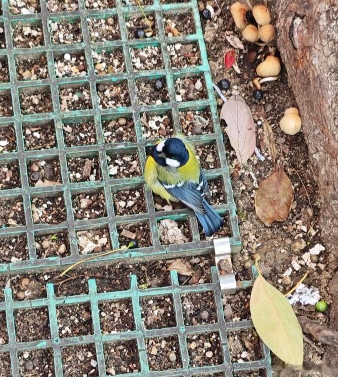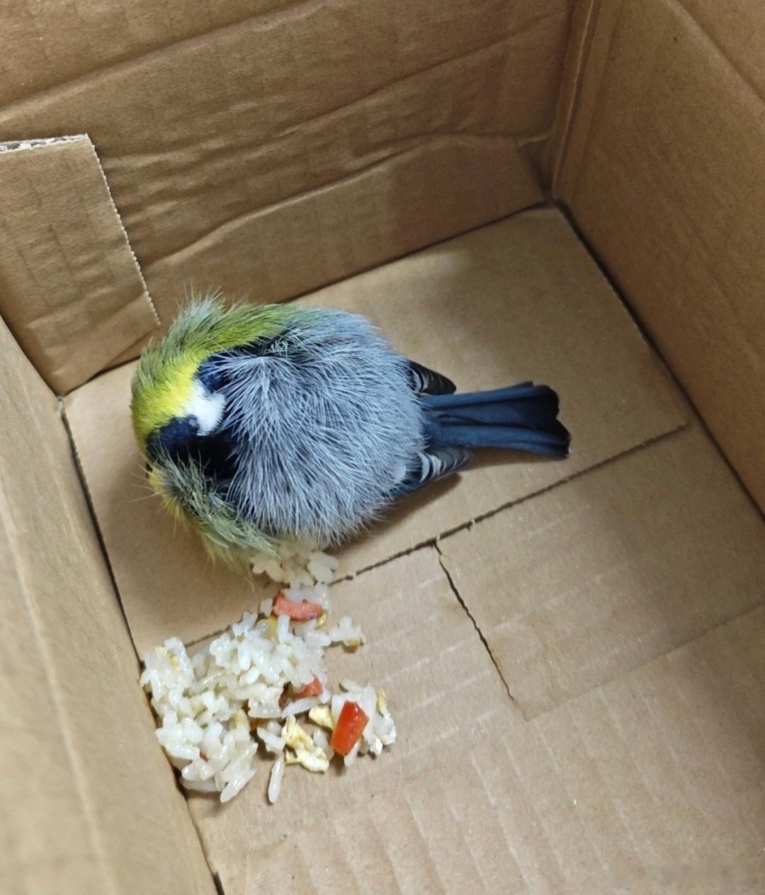 鸟粉投稿路边捡到的【绿背山雀】给孩子冻得缩成一团头塞翅膀后面了希望它休息会能