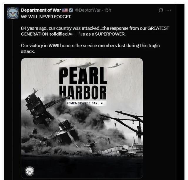 美国国防部:我们不会忘记!北京时间12月7日晚10时,已经改名为“战争部”的