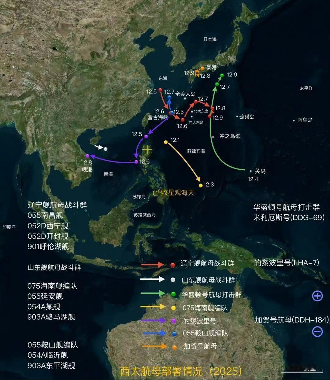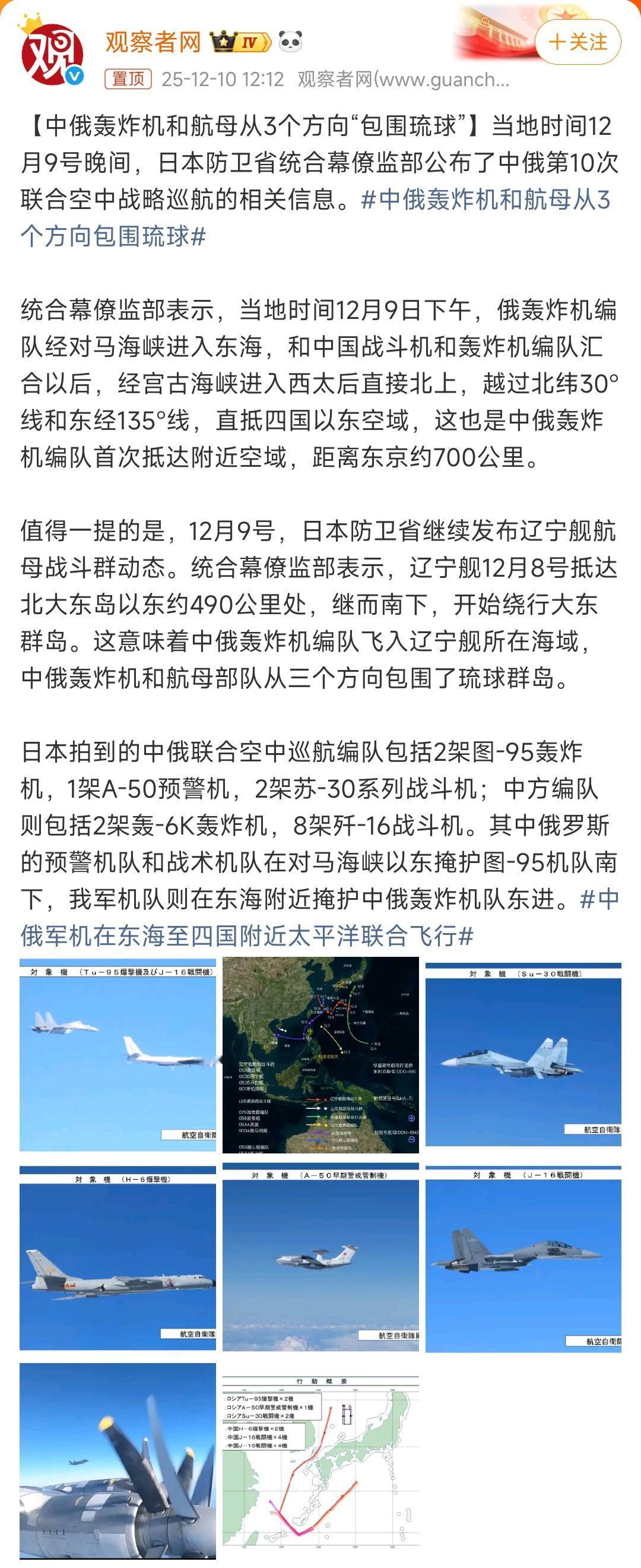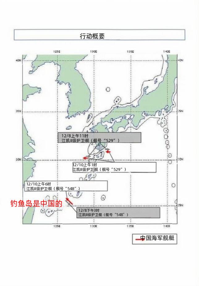 日本防卫省统合幕僚部报告西太平洋态势: 12月10日,我海军529号护卫舰从东经大隅海峡向西航行,进入东海。12月8日,它刚从东海经大隅海峡进入西太。这是在进行脱敏穿越啊。这条海峡很重要,是九州岛和琉球群岛的分界线。此处,大有可为。 与此同时,我548号护卫舰在12月8日、10日也在宫古海峡做同样的脱敏穿越。 12月9日,可能是为暂躲日本8日晚地震,辽宁舰停止北上,往北大东岛以东490公里处航行。贴着九州岛走,很爽。 海阔凭鱼跃,天高任鸟飞。 自由航行,以前听着生气,今日听着解气!