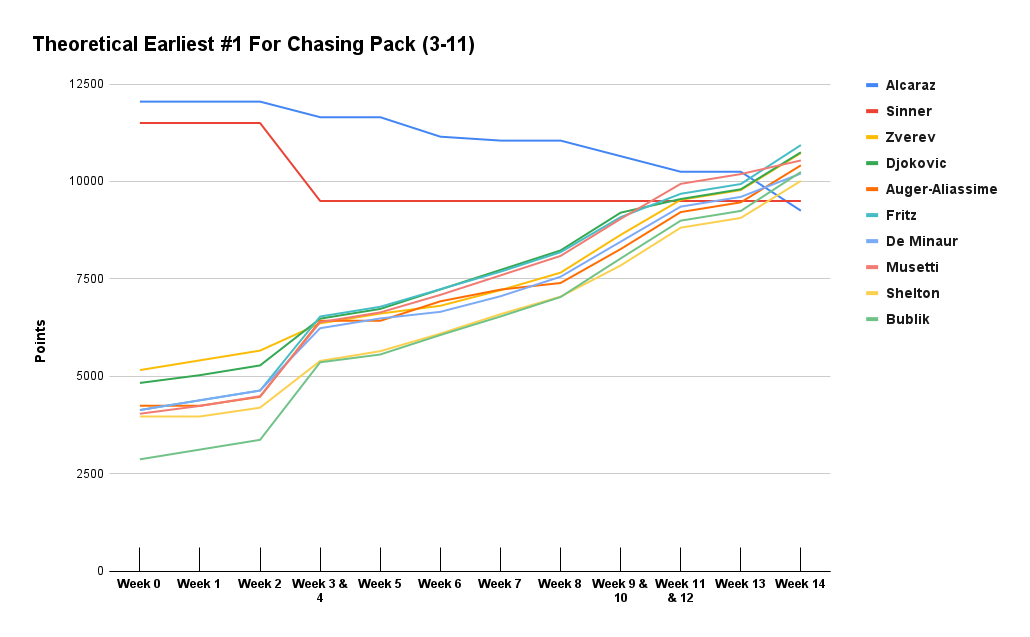 如图所示,明年蒙特卡洛大师赛之前,理论上没有人可以把阿卡或者辛纳扯下世界第一的宝座。进入红土赛季后,大家觉得会有球王篡位者出现吗?👁热点解读