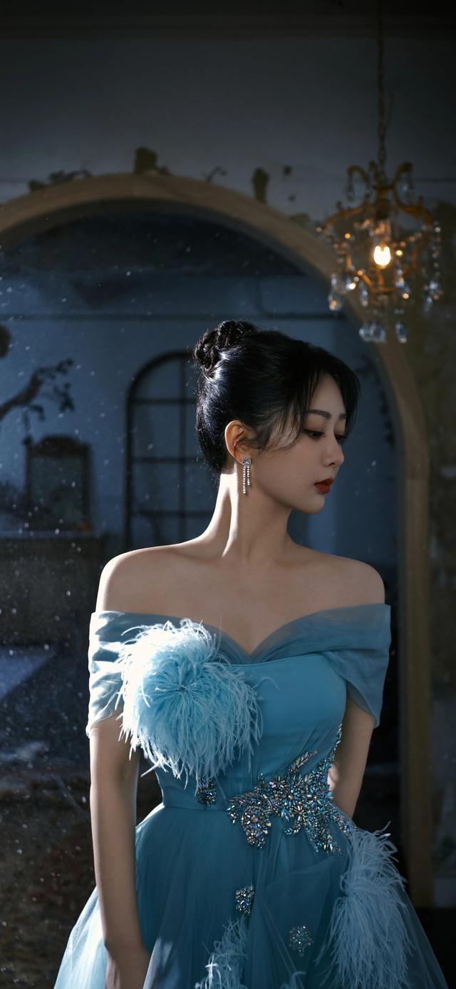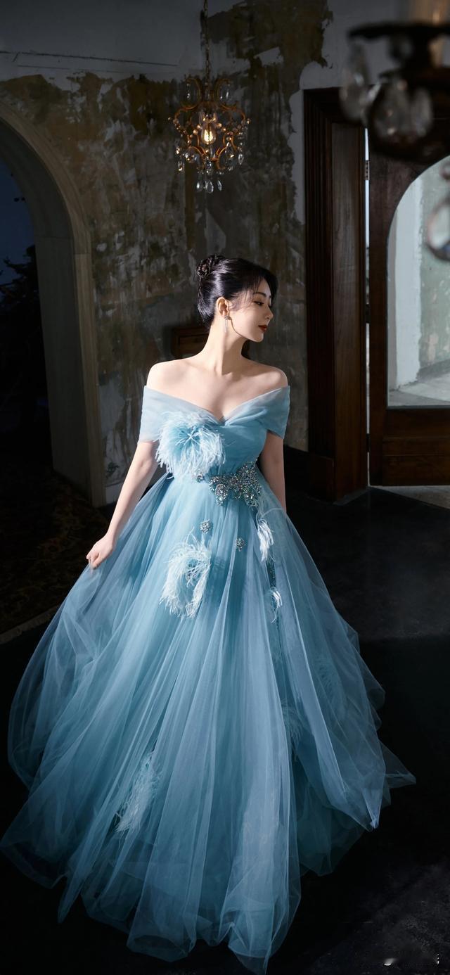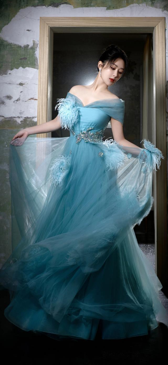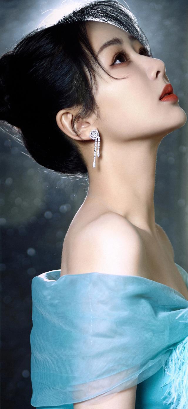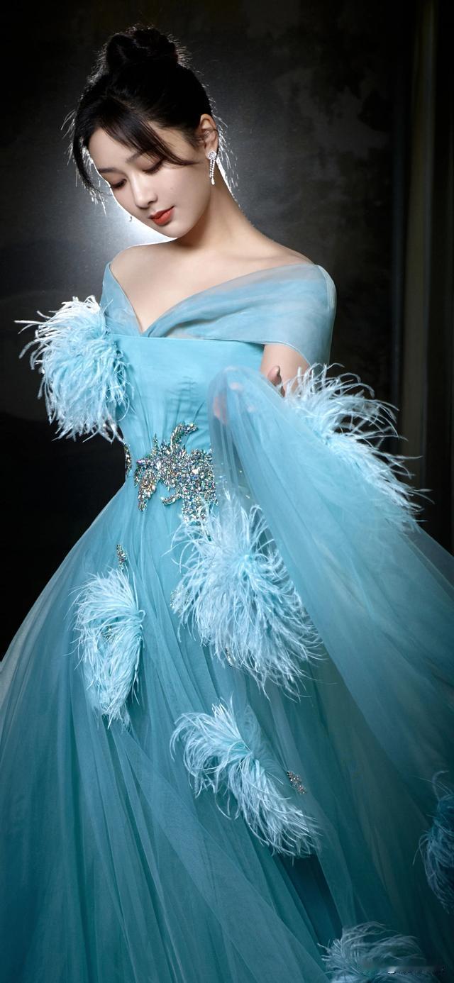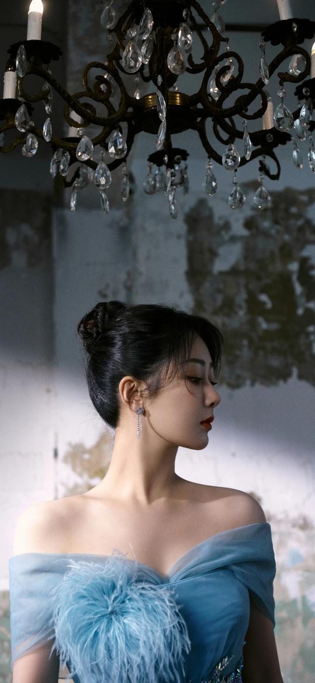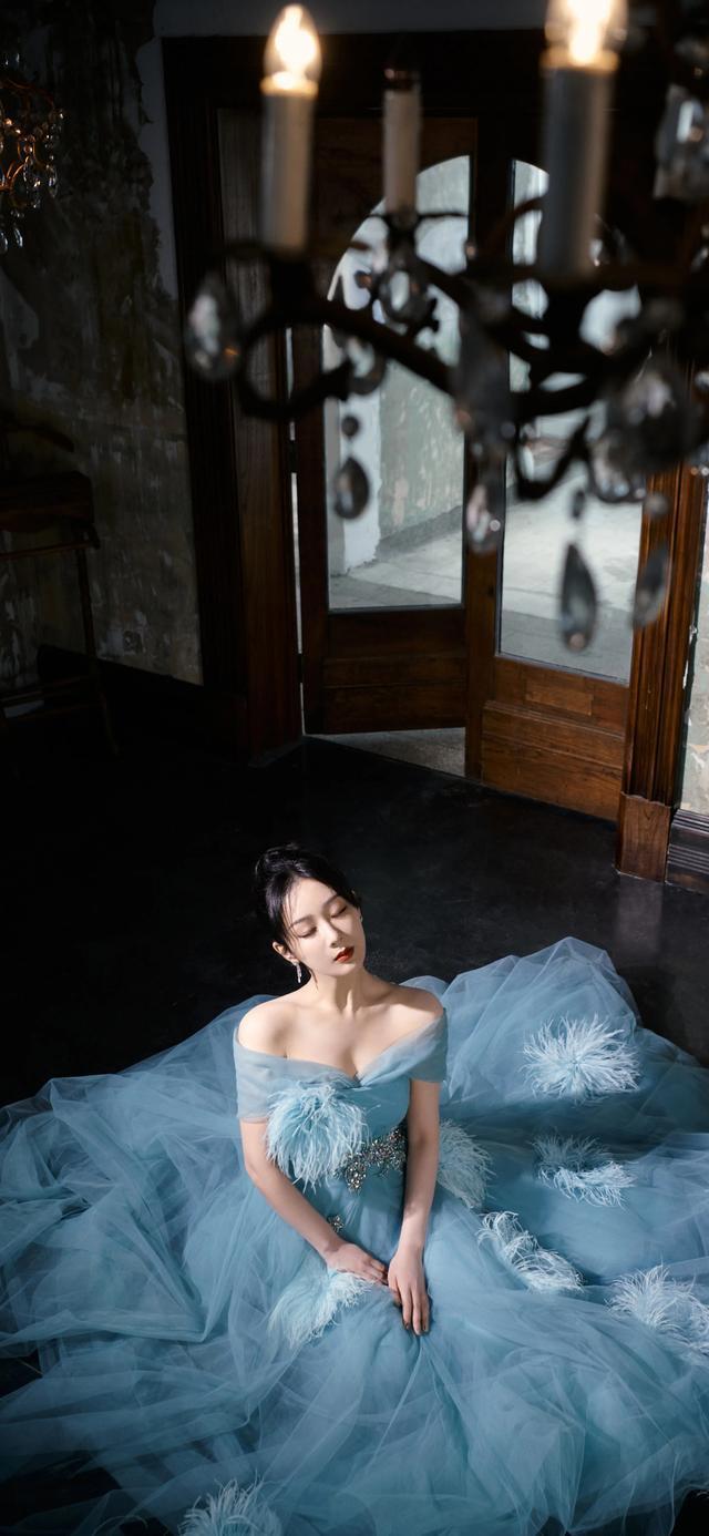 杨紫:碧蓝纱裙唯美写真壁纸。杨紫