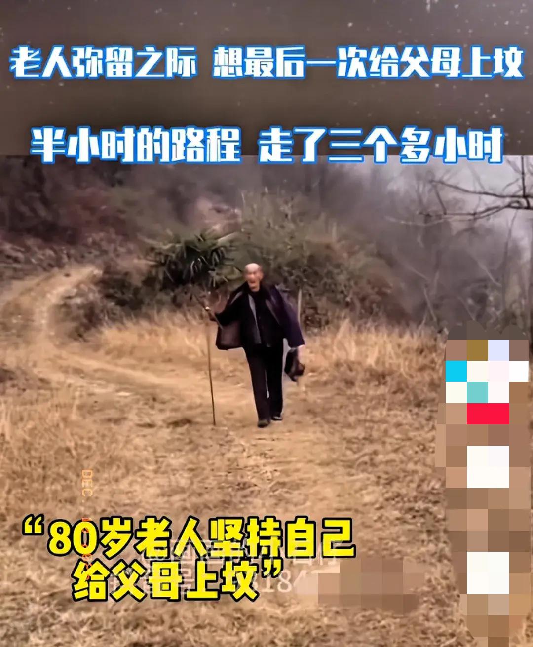 80多岁的老人拖着弥留之际的身体,把半小时的山路走成了三个多小时,只为给爸妈上最后一次坟。 那句“爹、娘,我就来和你们相聚了”,戳中了多少人内心最软的地方。 这哪是简单的上坟啊,分明是生命尽头对根的眷恋。 人这一辈子,无论走多远、活多大,在父母面前永远是孩子。网友说的从“爸爸带我行”到“我带孩子去”,藏的正是血脉里的传承。 我们总以为祭祖是怀念过去,其实更是给自己找心灵归宿。 父母在,人生尚有来处; 父母去,只剩归途。 这份牵挂从不是单向的,而是刻在骨子里的羁绊。 老人弥留之际 亲情传承