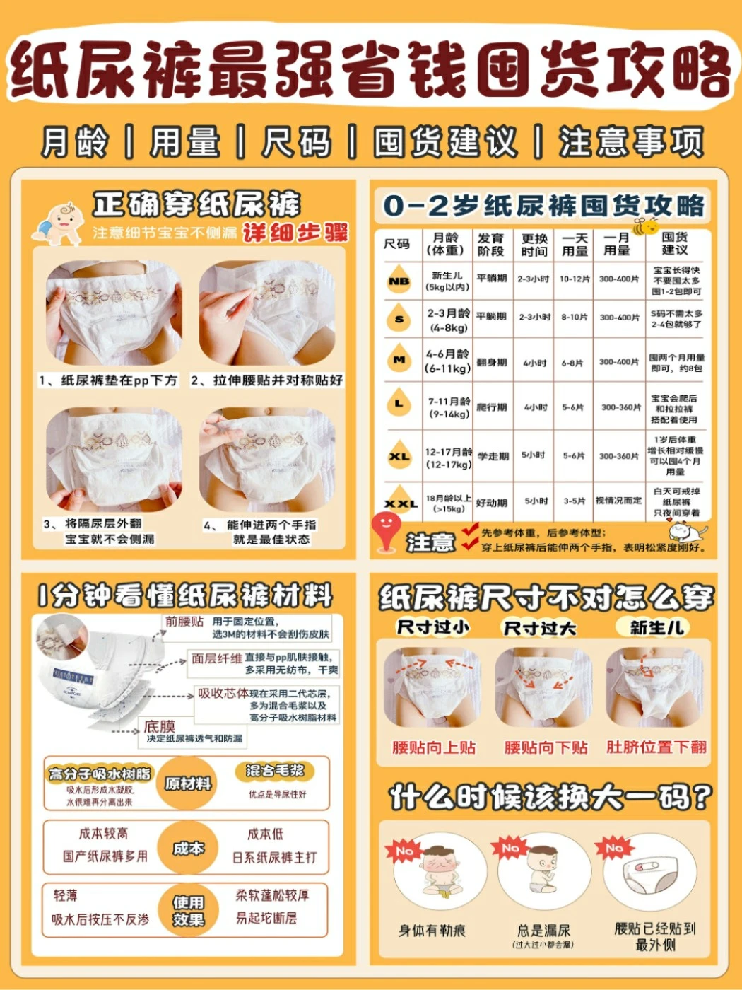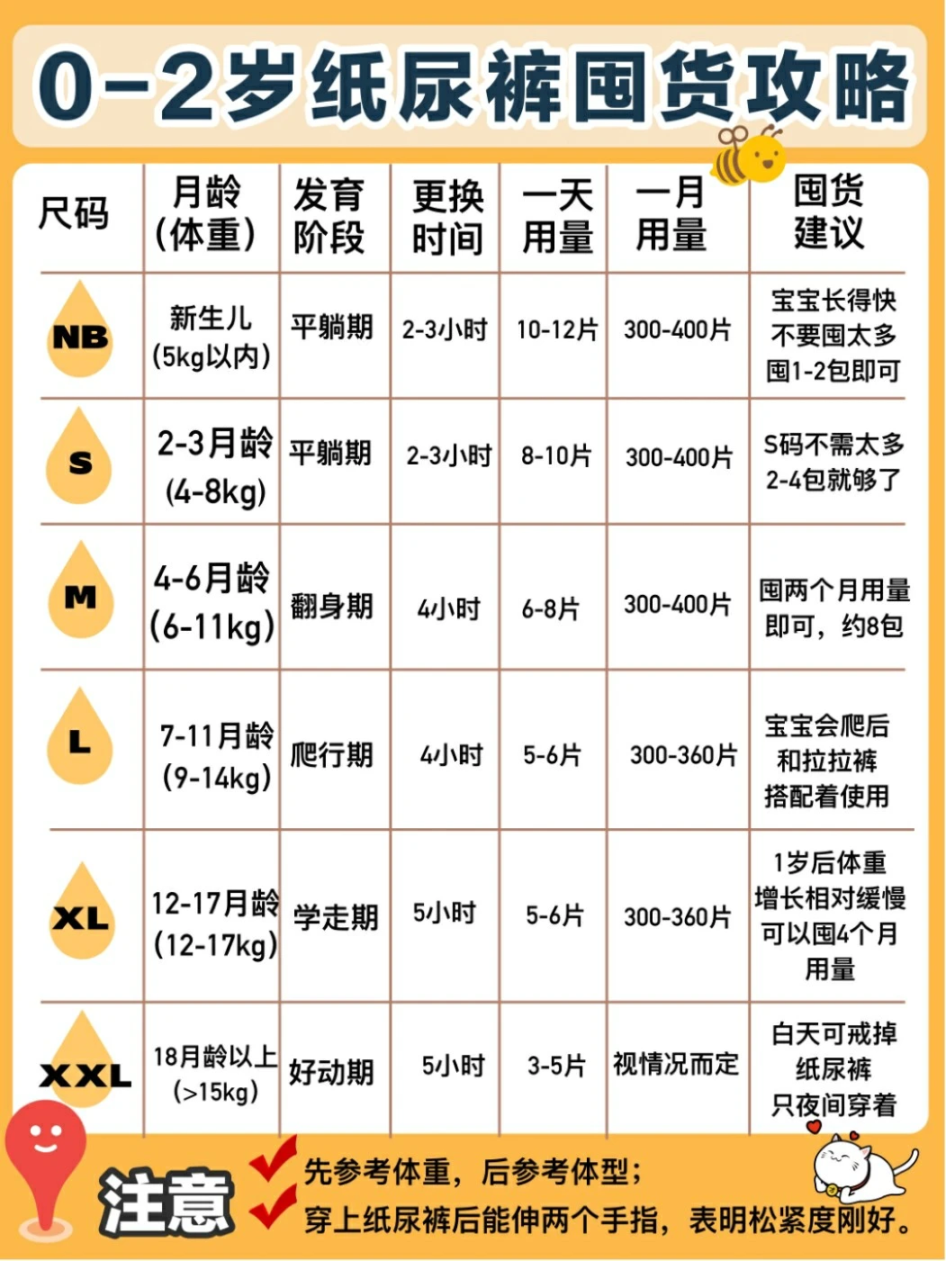 🚩具体囤货量以自己的宝宝每天实际更换频率为准,NB和S码不建议多囤!纸尿裤要囤大不囤小。
