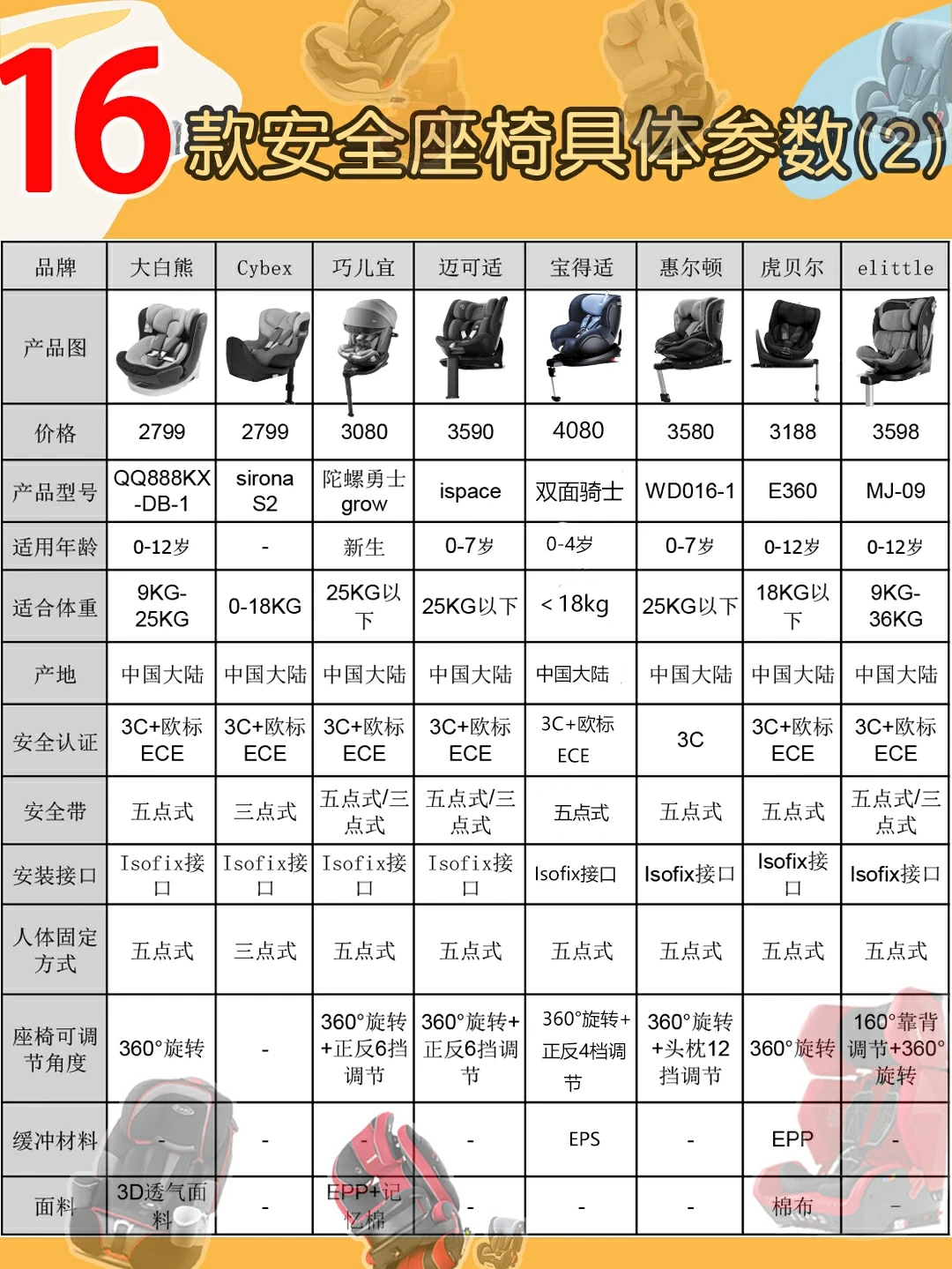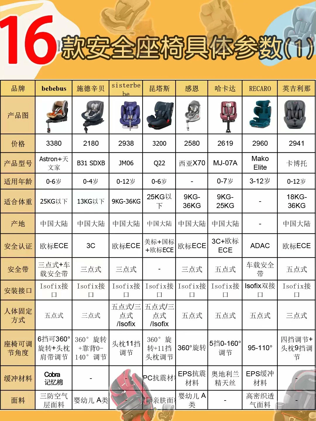 为了选一款称心的安全座椅,我翻阅了市面上16款安全座椅的资料和数据,统计加上分析足足耗费了半个月时间,真是工程量巨大~如果你还不知道选哪款,就来参考下吧~
