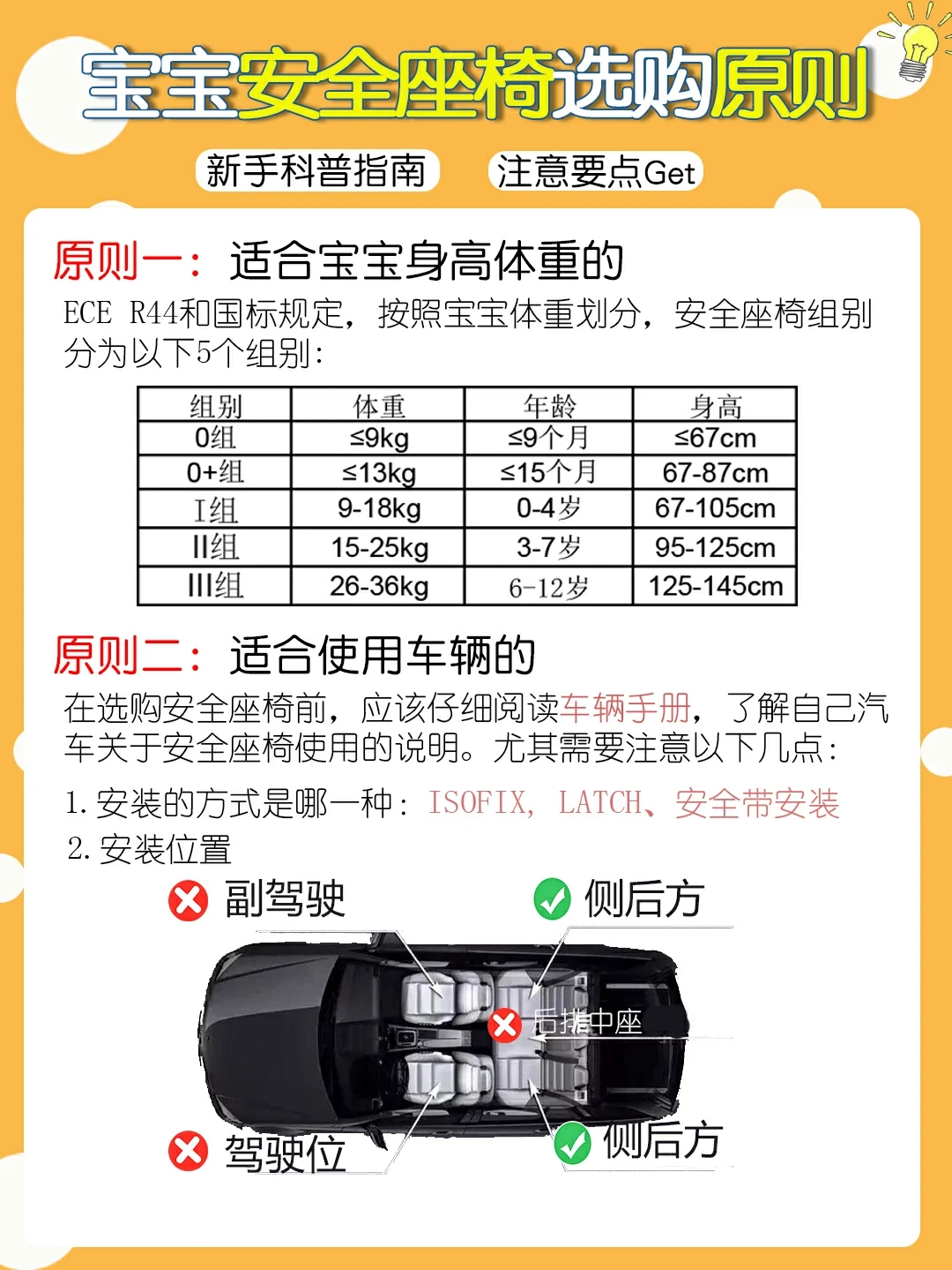 座椅应安装在汽车的左后方或右后方,不要安装在副驾驶或中间的位置
