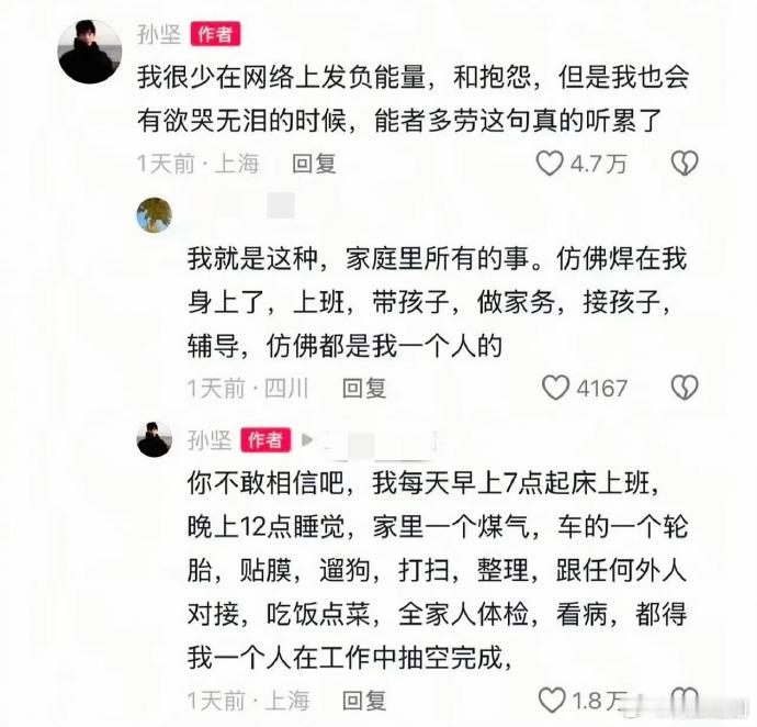 孙坚说自己每天很累,被指卖惨,大家怎么看贴膜、遛狗、打扫、吃饭点菜、体检等事?