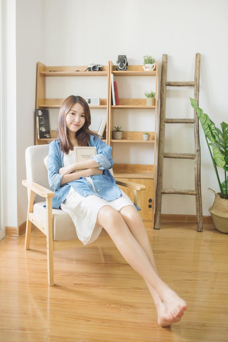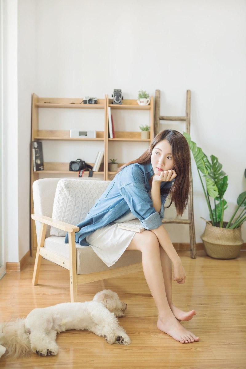 可爱的女孩坐在木桌上女孩 可爱 美少女 自然清新美少女 清秀美少女 写真温柔美少