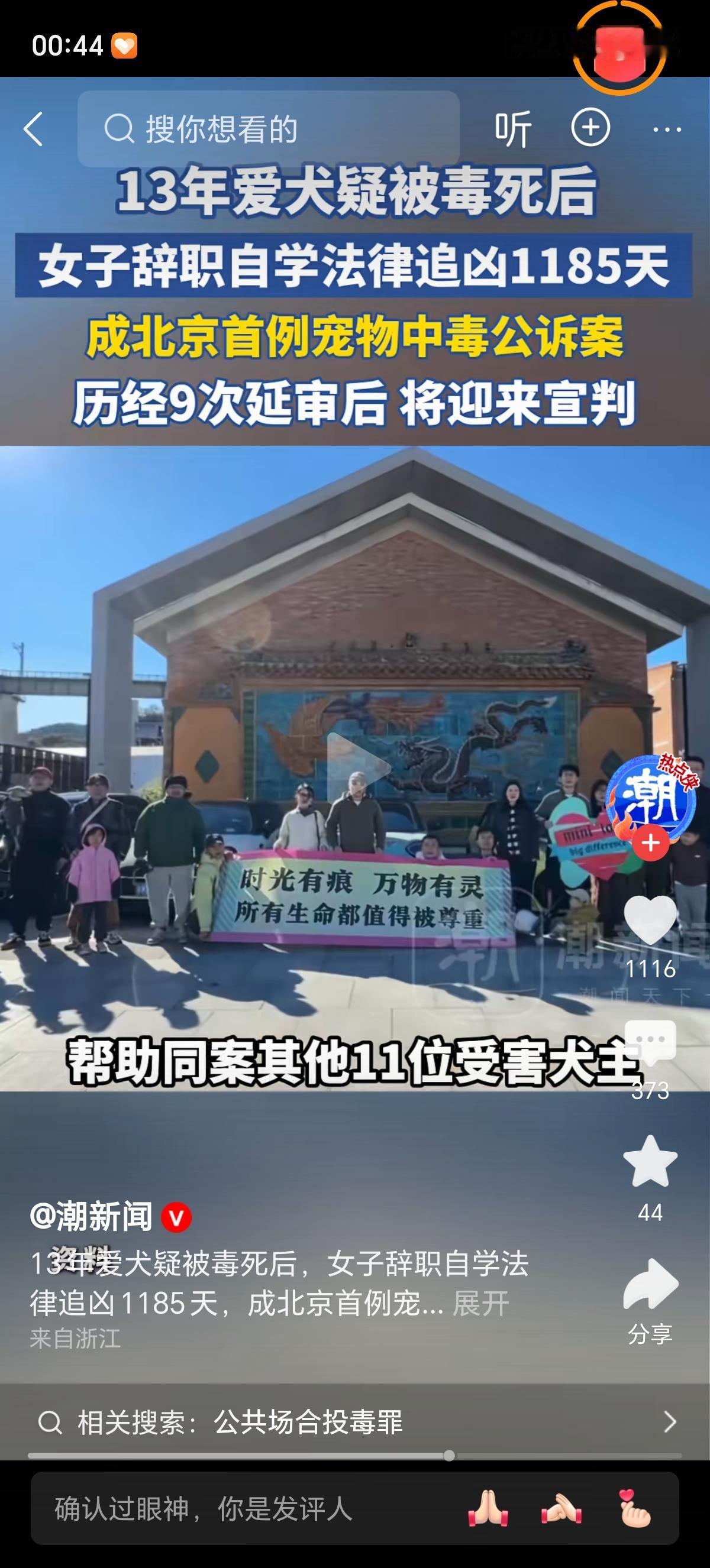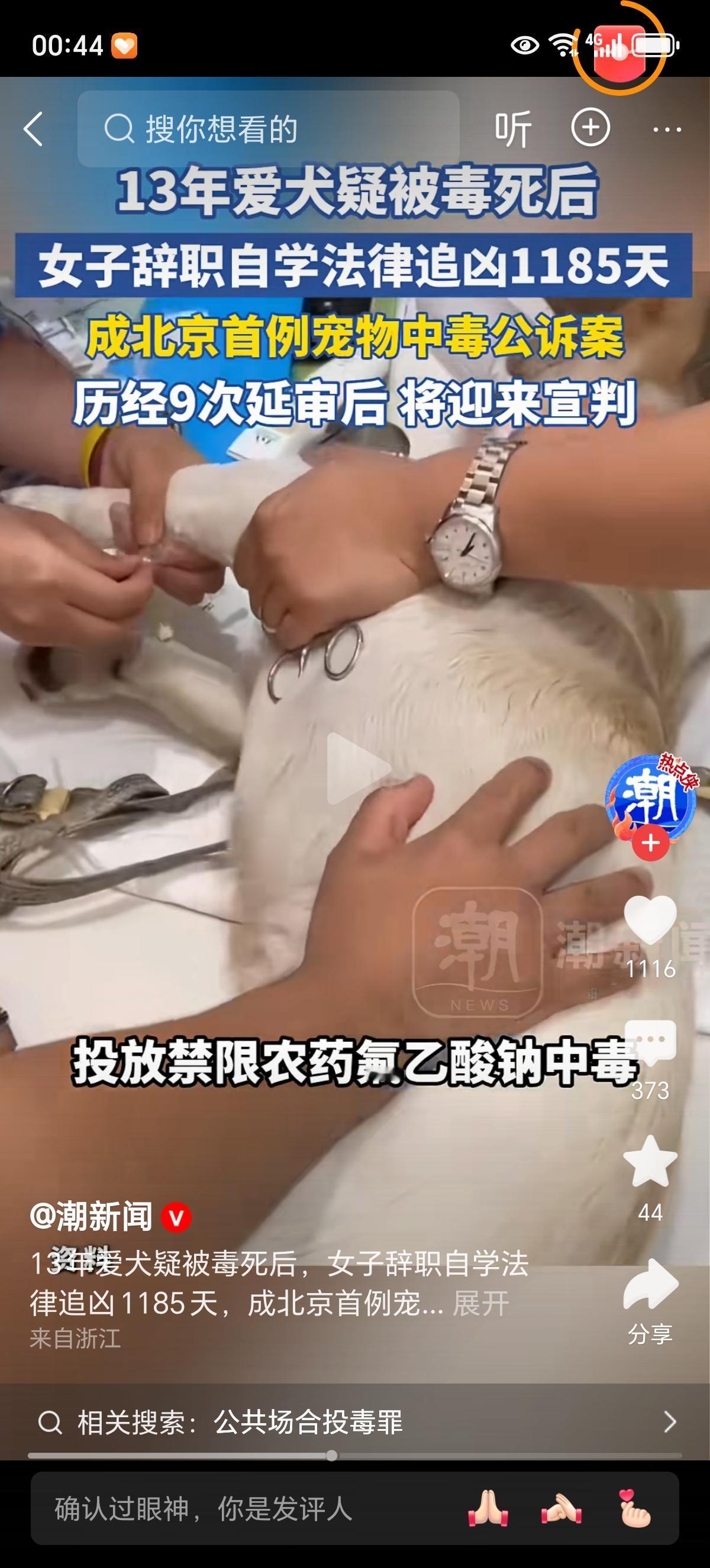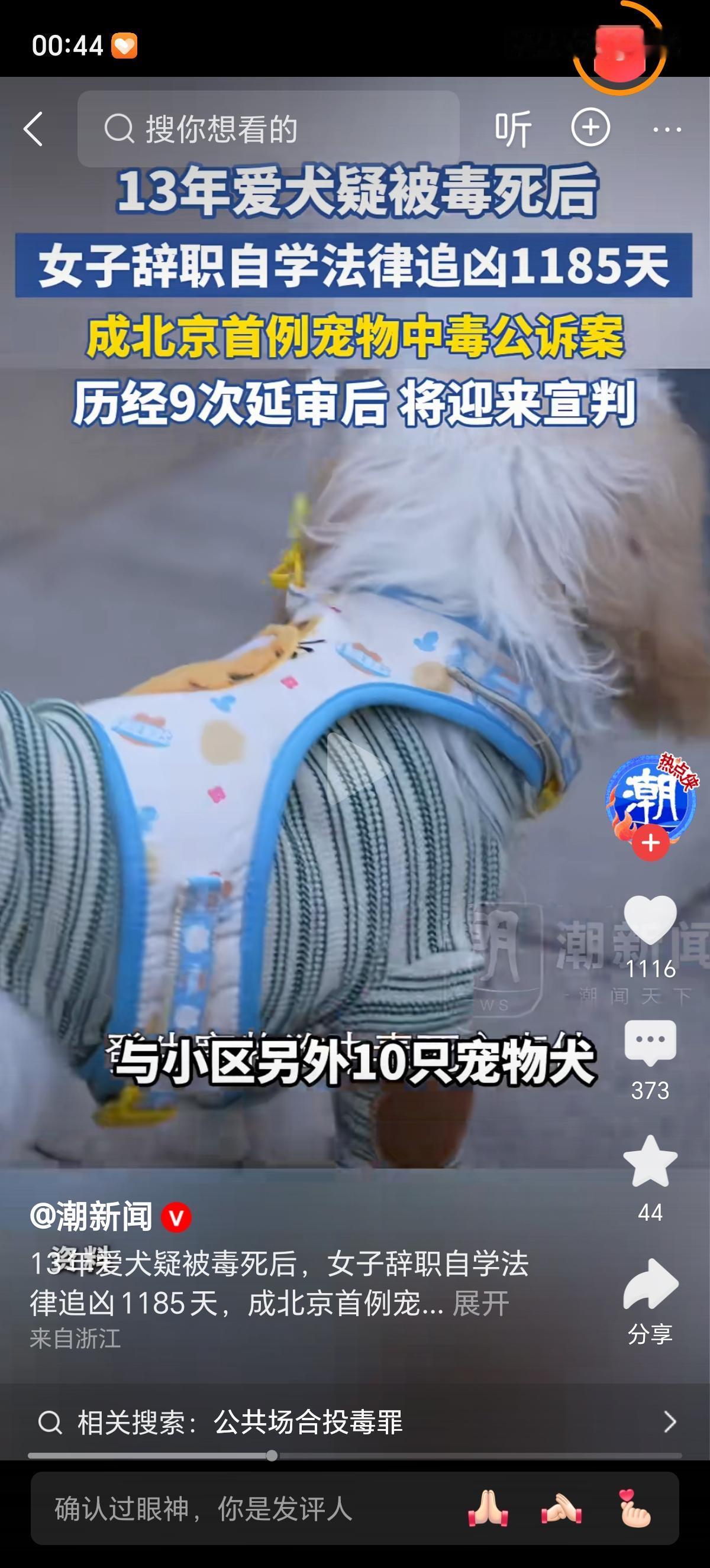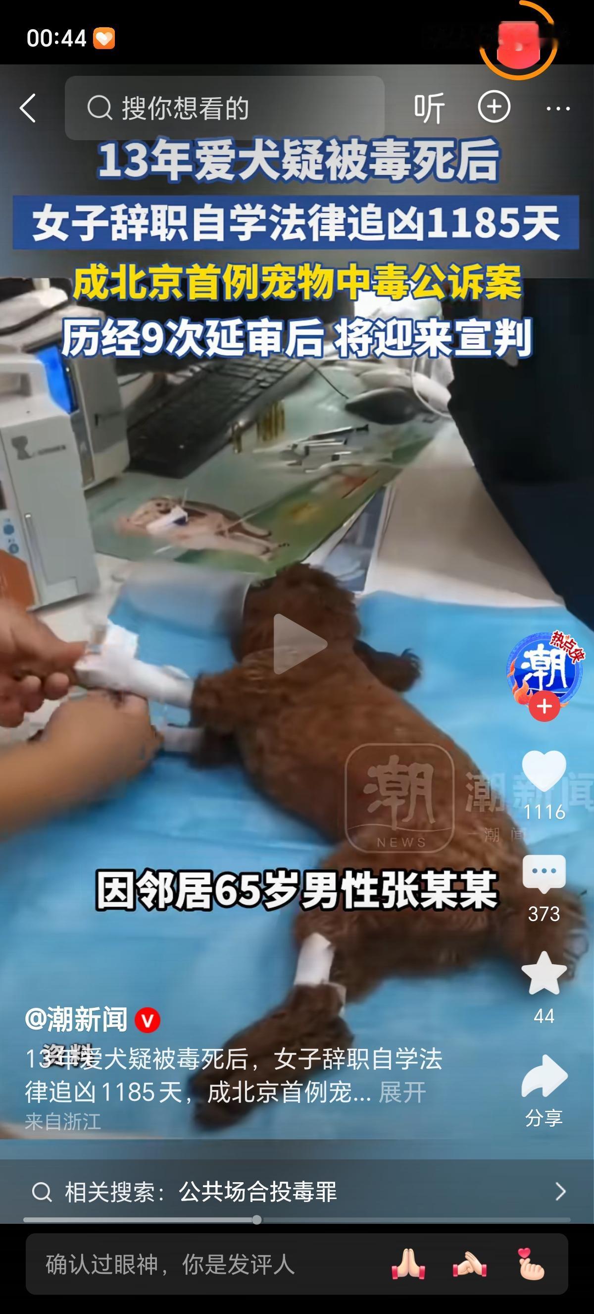 2022年9月14日,李依涵的世界轰然崩塌。陪伴她13年的西高地梗犬Papi,在小区遛弯后突发抽搐、口吐白沫,经6小时抢救仍无力回天。这只见证她北漂、恋爱、职场浮沉的"家人",最终被确诊为剧毒化学品中毒离世。同一天,小区内11只宠物狗相继出现中毒症状,9只不幸殒命,一场蓄意投毒案浮出水面。 小区65岁的张某某,干了件缺德事。就因为自家三轮车总被狗撒尿,心里膈应得慌,再加上小孙女不喜欢狗,他竟然用剧毒的氟乙酸钠泡了鸡脖子碎肉,往小区公共区域乱扔。 这一下可闯了大祸,11只宠物犬中毒,9只没救回来,连2只流浪猫也没能幸免。到了法庭上,他还嘴硬,说就是想吓唬吓唬狗,死活不承认狗的死和自己投毒有关系,半点悔意都没有,真是让人恨得牙痒痒。 李依涵的维权之路很难走,为此她辞去了头部影视公司的体面工作,自学法律,从而知道在现行法律体系中,宠物被界定为"财产",从警方最初认定的"故意毁坏财物",到批捕时的"寻衅滋事",再到最终立案的"故意投放危险物质罪",案件的法律定性几经波折。庭审一次次延期,先后经历9次审限届满,投毒者虽承认投毒,却否认与狗的死亡有关,对民事赔偿更是一概拒绝。网络上的质疑声也从未停歇,"狗奴""吃狗血馒头"的辱骂,"不牵绳活该"的受害者有罪论,像刀子一样扎在她心上。长期的精神内耗让她患上重度抑郁症,3年职场空窗期让她再难回归昔日生活,只能靠直播带货维持生计。