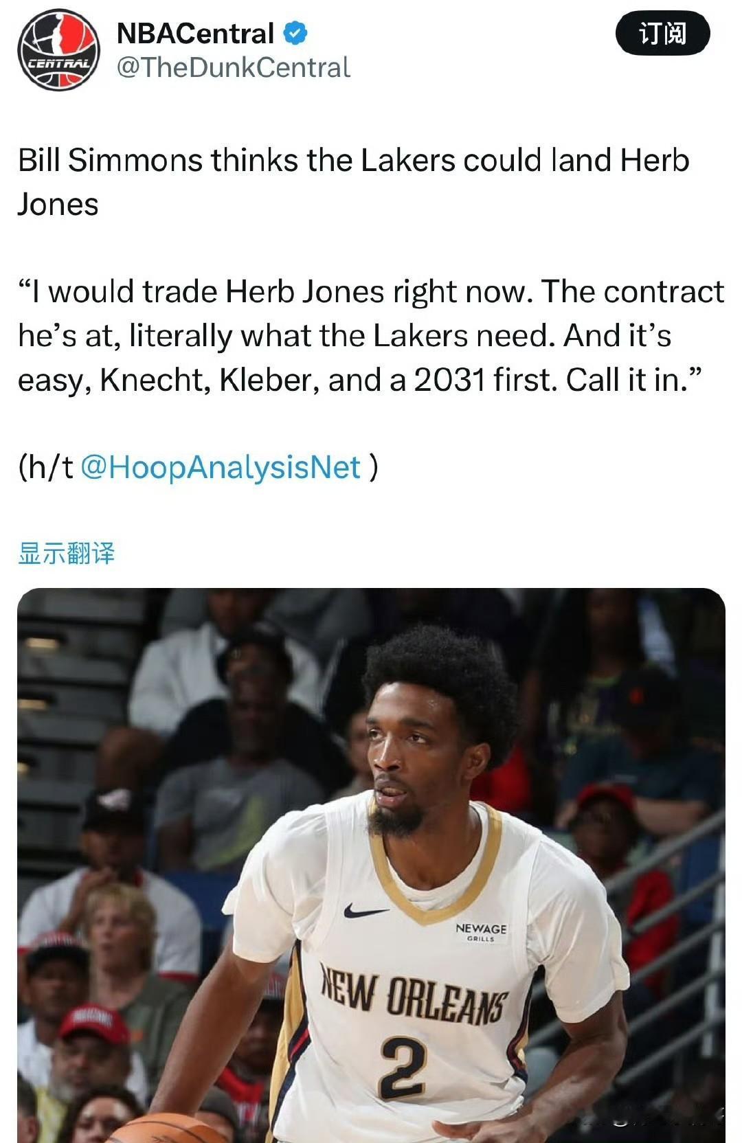 湖人有可能会拿下赫伯-琼斯!!! 根据记者比尔-西蒙斯最新消息透露,他表示自己
