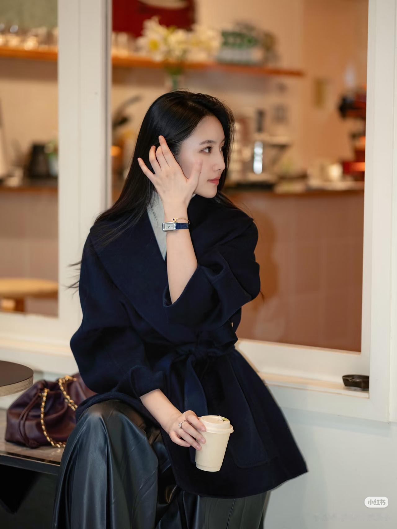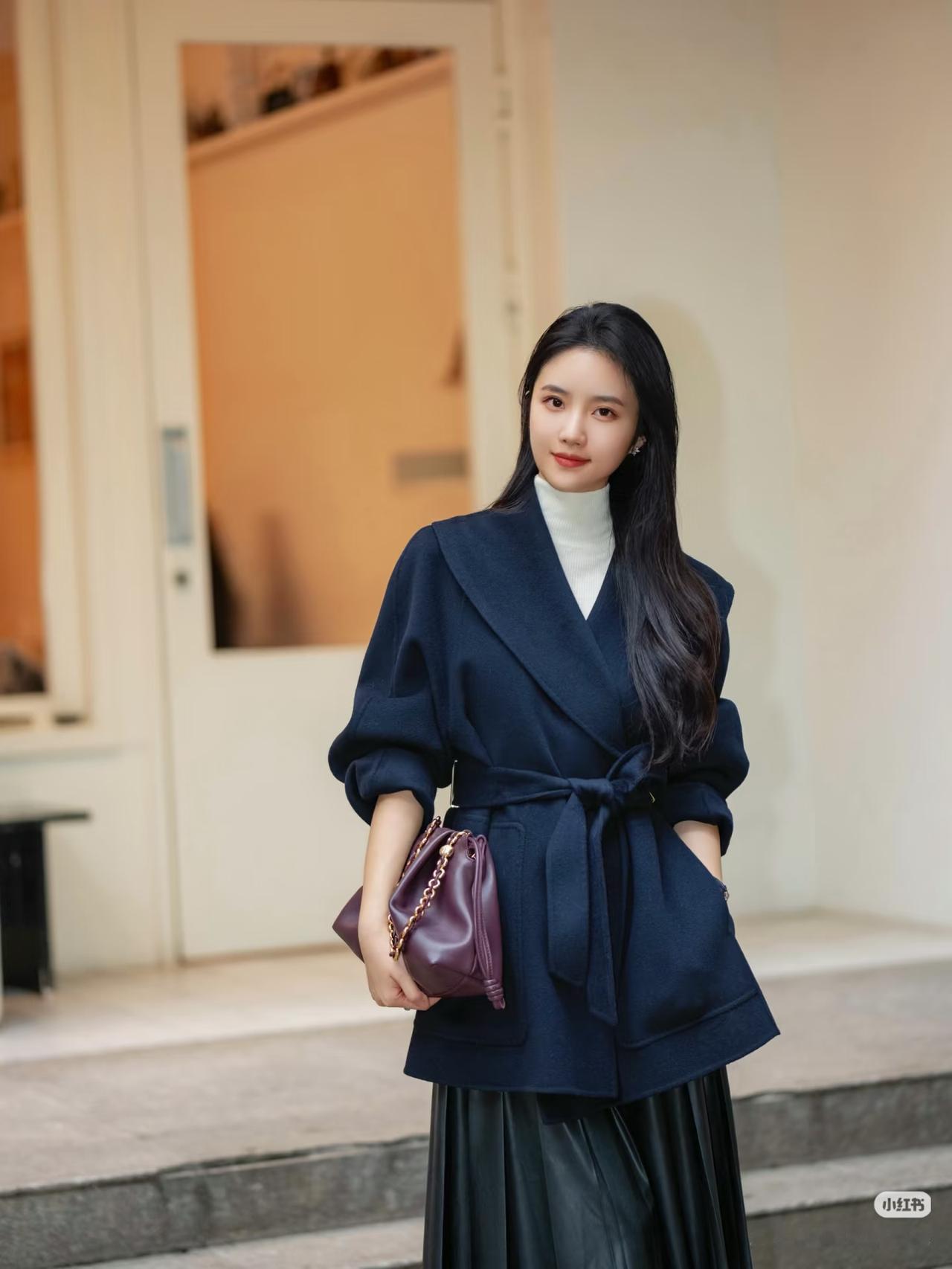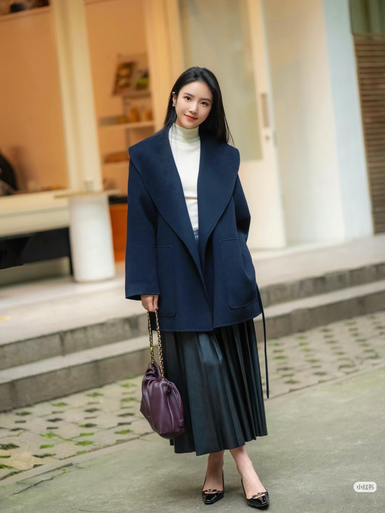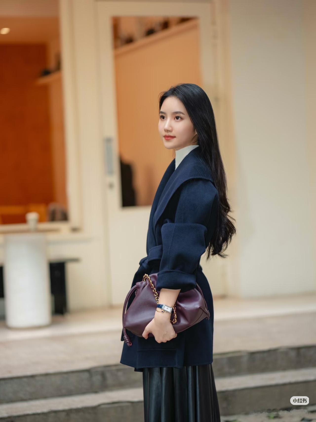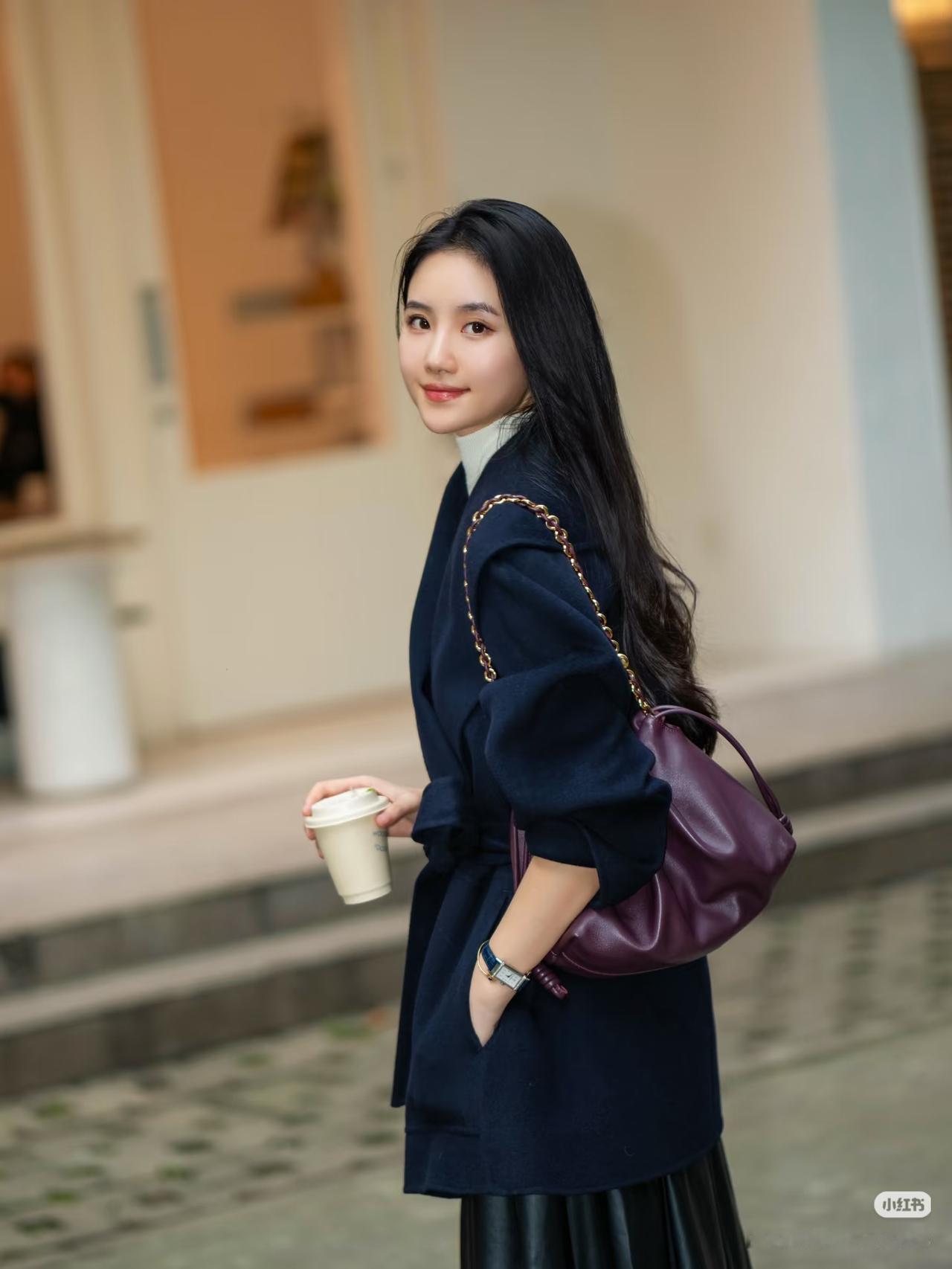优雅的白色大衣,搭配复古的白色帽子,在古老的建筑前,尽显时尚与古典的完美融合。