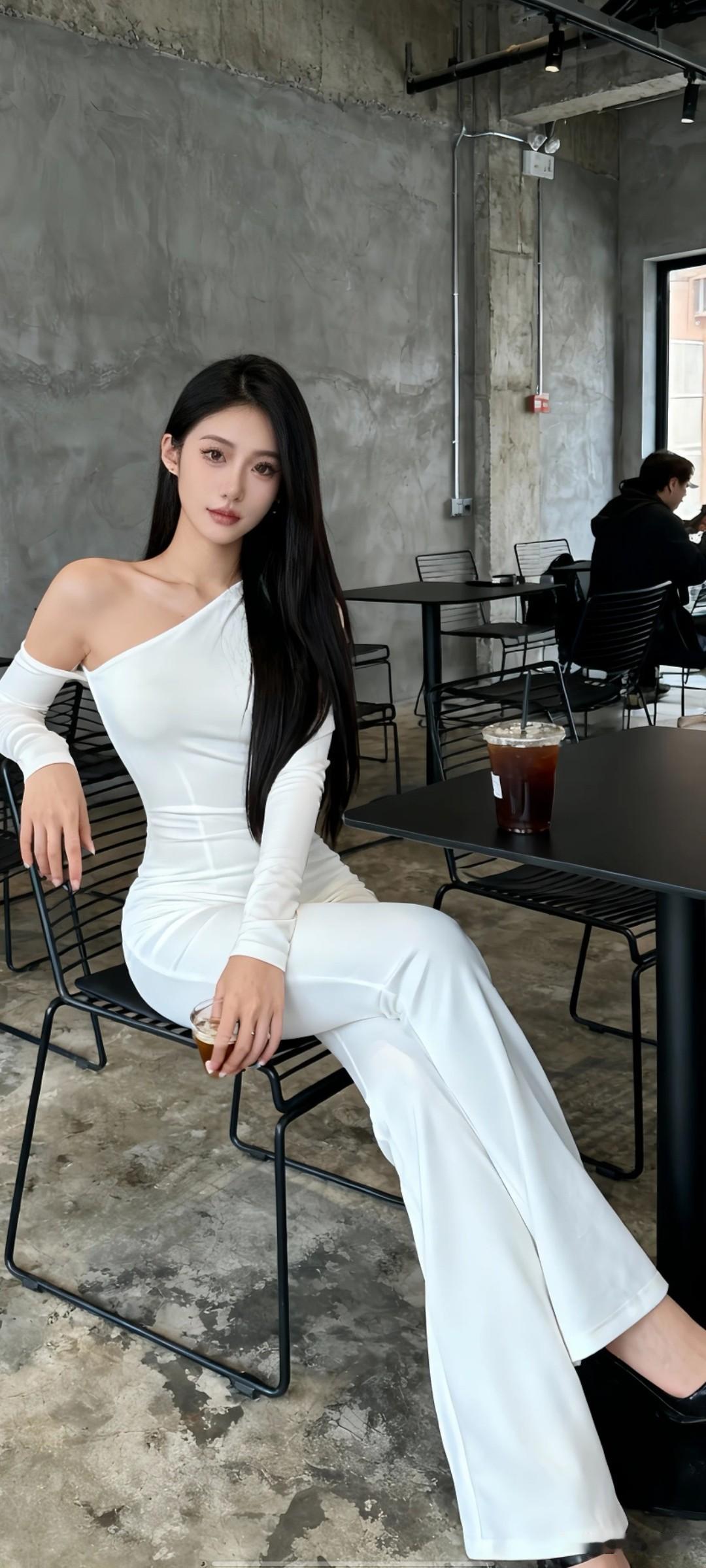 什么样的穿搭可以成为气质女神? 优雅白衣少女,咖啡馆里静享时光