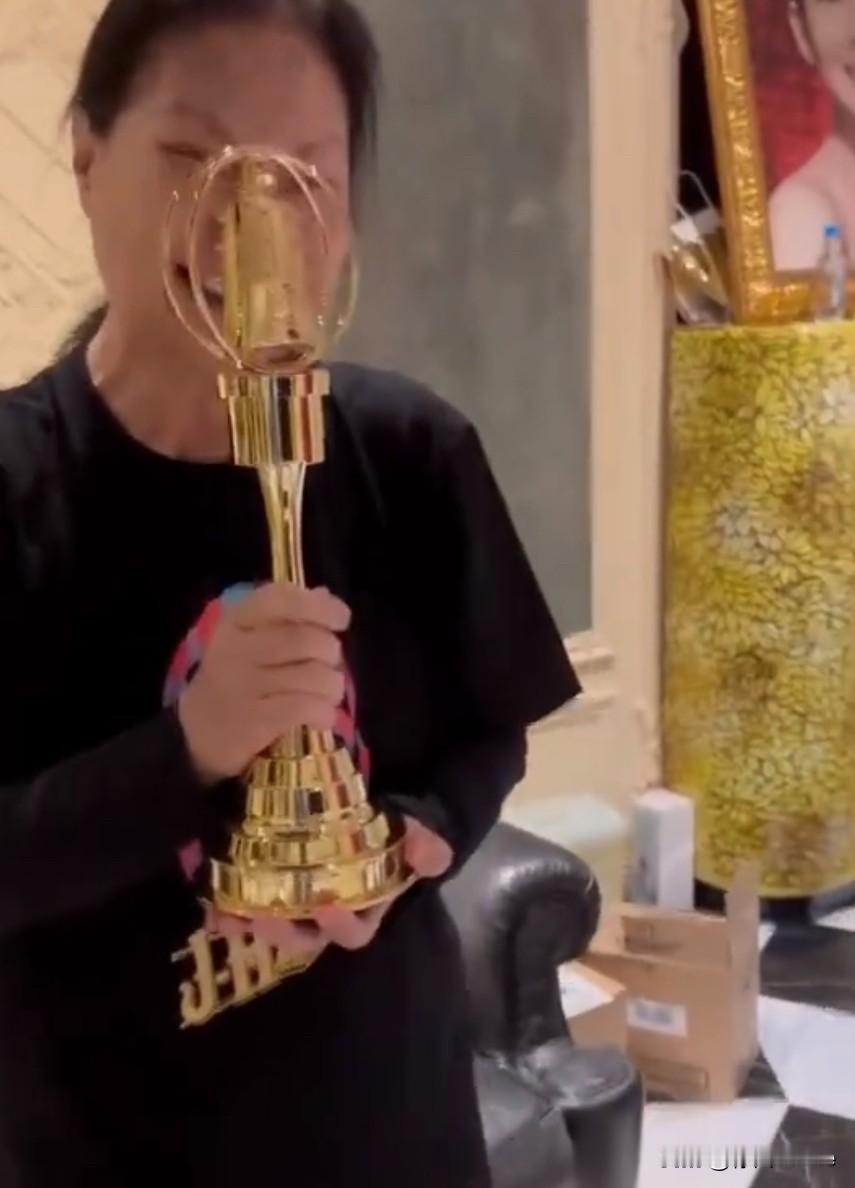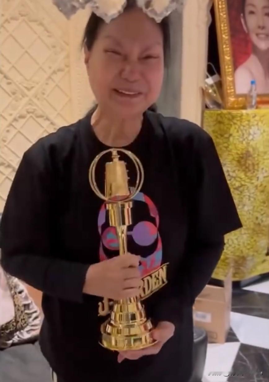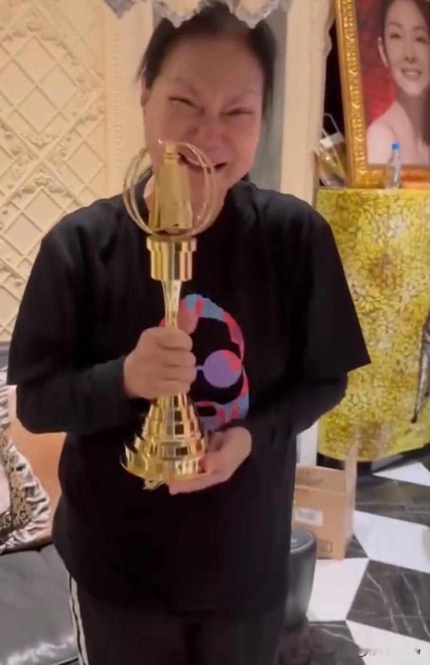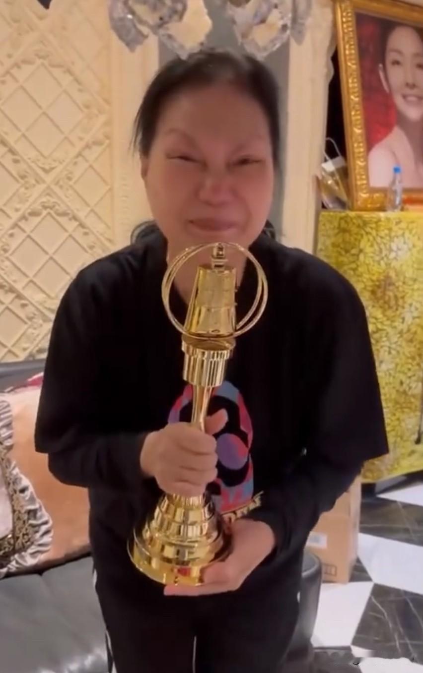 12月11日,小S把金钟奖奖杯送给S妈! S妈双眼含泪激动的举起奖杯,感谢小S,在S妈身后赫然立着大S笑容灿烂的画像! 小S拿着奖杯跟母女四人合影合照,发文称会继续努力,让S妈继续以她们姐妹俩为荣! 以前觉得悲伤是装的,如今一年过去了,再看S妈的状态,她是真伤心了一年,也苍老了许多,看到有人提到大S画像前的水瓶跟画像后的袋子,认为是对逝者的忽视与不尊重 或许在她们心中大S一直都在,桌上摆着的只是画像而已!