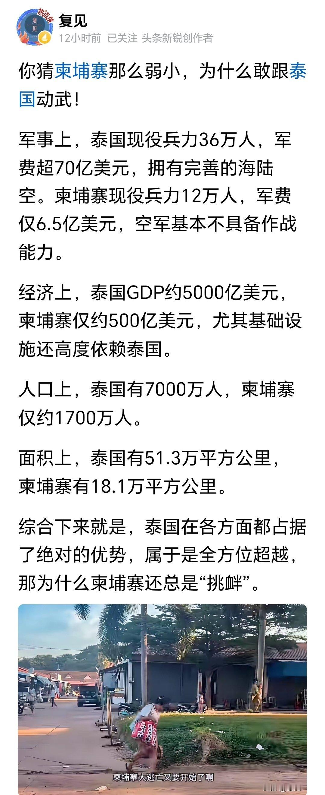 柬埔寨那么弱小,为什么敢跟泰国动武?
