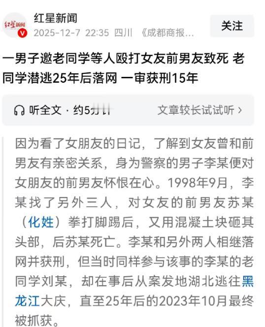 “太无赖了!”重庆,一家老小住在酒店四个月,拖欠4153房费不肯搬走!老板:“我说房费免了,再倒贴他500块钱搬家费他也不愿意搬走!”房客:“你算哪把夜壶,让我走?”网友:一个善良的老板娘,一个毫无底线的老赖!看的人直摇头!难道这种情况报案都没用吗?   2023年深秋,黑龙江大庆的清晨带着凛冽寒意,当宜昌办案人员的手铐锁住刘某手腕时,他藏在棉服里的手止不住颤抖。   这个在逃25年的男人,终于在一句“我们是宜昌来的办案人员”的告知中,卸下了半辈子的伪装。   1998年9月18日,长阳当地公安机关接到报案,在县城郊的山间公路坎下,发现了青年李雷的尸体。   现场勘查确认,死者头部有多处钝器伤,致命伤来自混凝土块的重击,然而案发现场没有目击者,只有路边散落的几片摩托车外壳碎片,和一枚模糊的汽车轮胎印。   办案人员沿着轮胎印追查,很快锁定了一辆轿车,车主正是当地一家单位的职员李某。   当办案人员找到李某时,他外衣领口的泥渍还没洗净,面对询问,这个本该知晓规矩的成年人,却前言不搭后语。   三天后,李某终于供述了犯罪事实,而这一切的起因,竟是一本被偷看的日记。   李某与女友相恋半年,一直对女友偶尔提及的“过去”心存芥蒂,事发前一天,他在女友出租屋收拾东西时,发现了一本带锁的日记本。   撬开铁锁的瞬间,他以为能找到“安心”的证明,却看到了女友记录与前男友李雷的过往,那些关于牵手、相伴的文字,在李某眼中变成了“背叛”的证据。   他凭什么占据她的过去?这个念头在李某脑海里疯狂滋长,原本的理性被嫉妒冲垮。   然而他没有找女友对质,反而拨通了三个老同学的电话,用“被人欺负了”“帮忙出头”的说法,约好一起“教训”李雷。   借到一辆私家车后,李某带着刘某等人提前在李雷下班必经的公路蹲守。   傍晚六点,当李雷的摩托车灯光划破暮色,四人立刻围了上去,李雷刚转过弯道,车灯就被路边突然窜出的黑影挡住,紧接着肩膀传来剧痛,连人带车摔在碎石路上。   你们是谁?李雷挣扎着起身,还没看清对方模样,拳头就砸在了脸上。   起初只是拳打脚踢,直到李雷蜷缩在地求饶,李某突然指着路边的混凝土块嘶吼,往死里打,让他再也不敢出现!   刘某第一个冲上去,抱起十几斤重的石块砸向李雷头部,沉闷的撞击声后,李雷没了动静,四人这才意识到闯了大祸。   李某强作镇定,指挥同伙把尸体拖到路坎下,将沾血的石块扔进清江,随后开车连夜逃往外地。   案发13天后,李某和另一名同伙在襄阳落网,1999年,李某因故意伤害罪被判无期徒刑,同伙也获刑十五年。   但核心施暴者刘某和张某却不见了踪影,成了悬在办案人员心头的石头,而这一追,就是二十五年。   当地公安机关的追逃小组换了四任负责人,每任负责人交接工作时,都会特意提起这起命案,他们带着刘某的照片,跑遍了全国十几个省份,走访了上百个刘某可能藏身的村落。   2011年,办案人员通过户籍信息比对,在广东清远抓获了张某,面对办案人员,张某哭着说,13年里他不敢用真名,不敢生病住院,连父母去世都没敢回家。   只剩下刘某,如同人间蒸发,直到2023年,依托大数据侦查技术,办案人员通过信息比对发现,大庆一名冒用他人身份的打工者,与刘某的生物信息完全匹配。   被捕后的刘某,在询问室里说了这样一段话,每天晚上闭眼,就会想起那天的石头砸下去的声音,我不敢和人说话,不敢看穿制服的人,连听到‘宜昌’两个字都要躲半天。   尽管刘某家属赔偿了25万元获得谅解,且自愿认罪,但法院审理认为,其作案手段残忍,后果严重,最终以故意杀人罪判处有期徒刑十五年。   相关司法数据显示,近年来,涉情感纠纷的暴力案件中,因占有欲、猜忌引发的案件占比不低,这些案件中,像李某这样因窥探隐私激化矛盾的,不在少数。   心理学专家指出,亲密关系中“隐私边界模糊”是重要隐患,很多人将伴侣的过往视为“自己的所有物”,用偷窥、追问等方式试图掌控对方,这种行为本身就埋下了冲突的种子。   更值得警惕的是,李某的职业身份本应让他更懂规矩,却因个人情绪突破底线,用不当方式为暴力铺路,这种行为带来的警示意义格外沉重。   而二十五年的追逃历程,也让我们看到正义的另一种模样,它不是瞬间的雷霆一击,而是几代人接力的坚守。   从最初的走访摸排,到如今的大数据研判,技术在进步,但办案人员“命案必破”的决心从未改变。   案件宣判那天,李雷的老母亲捧着儿子的照片泣不成声,二十五年里,她每天都会擦拭相框,等着凶手落网的消息,这个迟来的结果,终于让老人得到了些许慰藉。   合上那本牛皮纸案卷,清江的流水早已冲淡了当年的血迹,但留下的教训却格外清晰。   一本日记,本是情感的载体,却成了暴力的导火索;一次冲动,本是可以化解的矛盾,却毁了四条人生。