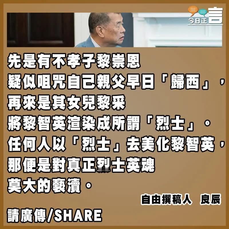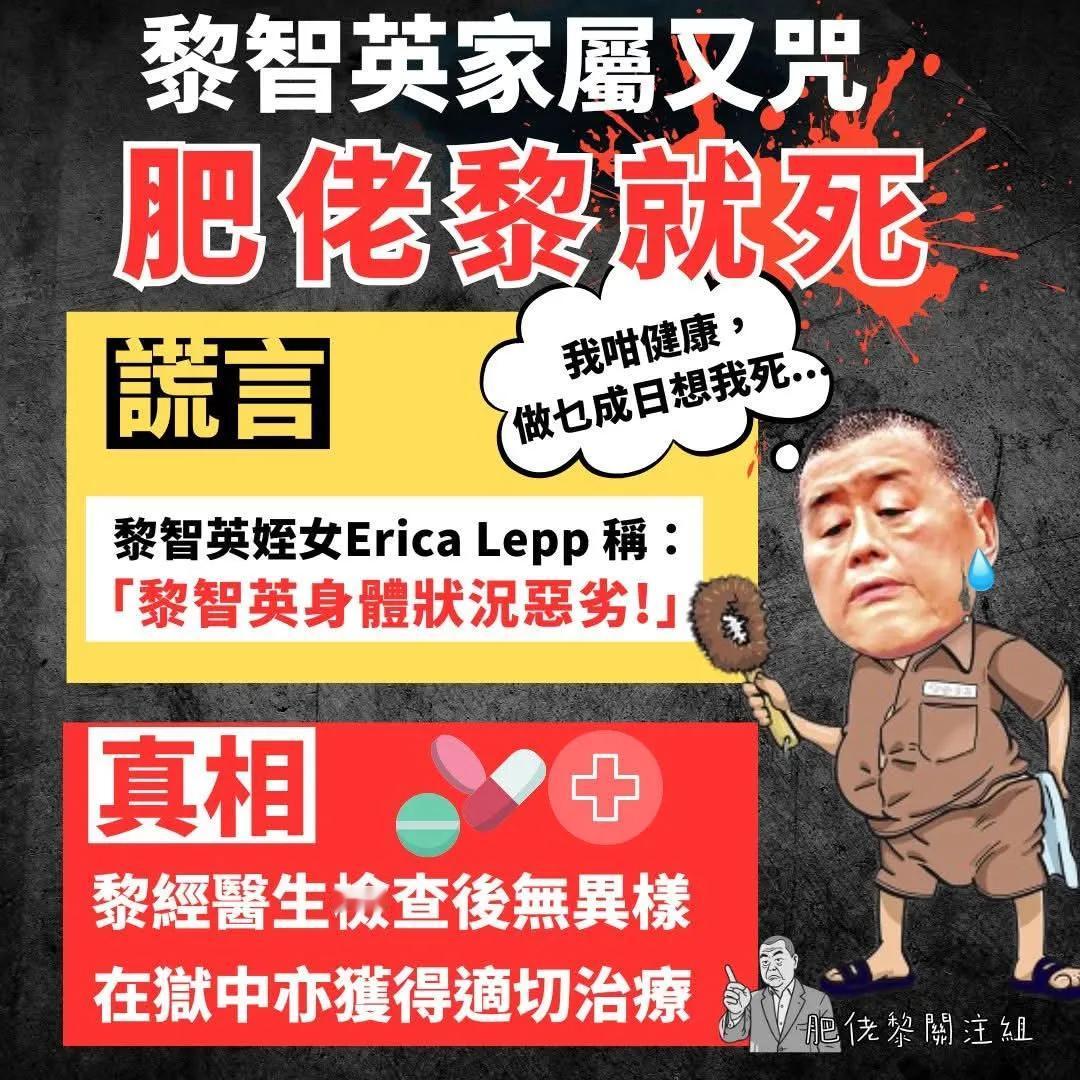 《香港高Sir•高能•热点词》 2025.12.10 热点词:肥佬黎绝不是什么烈士 肥佬黎儿女枉为人 黑手休想干预特区国安案 肥佬黎涉嫌干犯香港国安法,其女儿黎采近日投书《华盛顿邮报》,声称父亲的健康在狱中急剧恶化,又称过去几年在探监和旁听审讯时,她近距离观察到父亲指甲脱落、牙齿腐烂、眼睛充血。她声言若中国政府不释放父亲,他很有可能成为什麽「自由的烈士」,更称若父亲获释将离开香港,并扬言其父「为正义奔走的时日已经结束」,只希望与家人「和平地度过馀生」云云。 高SIR:肥佬黎这个妄图勾结外部势力破坏香港稳定的人物,竟被其子女妄图塑造成什麽「烈士」,这难道不是天大的笑话吗?肥佬黎绝不是什麽烈士,他不过是一个妄图分裂国家、破坏香港繁荣稳定的乱港分子,他的所作所为,与「烈士」二字何干?肥佬黎的子女,口口声声为父「喊冤」,妄图以煽情之词博取同情。其儿女实在枉为人,不仅没有认清父亲犯下的严重罪行,反而四处奔走企图为父亲开脱罪责,甚至不惜藉助外部媒体的力量,试图向香港特区司法施压,既一再间接咀咒自己父亲丧命,如今更公然亵渎烈士英灵,这种行为,岂是人的行为?或许,他们不是不知道父亲的所作所为,只是想借着父亲的「馀光」,为自己未来的外国美好生活多年一点政治筹码罢了。更令人愤慨的是,一些外部势力也趁机插手,妄图通过媒体炒作,干预香港特区国安案的审理。他们以为,凭借几句颠倒黑白的言论,就能左右香港的司法公正吗?黑手休想干预特区国安案!香港是中国的香港,香港的司法独立不容任何外部势力染指。特区政府已经多次严正声明,肥佬黎在羇押期间得到了适切的待遇和医疗保障,其代表律师也早已澄清,他在狱中并未受到任何不公正对待。那些外部媒体的所谓「报道」,不过是无稽之谈,是别有用心的抹黑和造谣!肥佬黎的案件,是香港国安法实施以来的一宗重要案件,它关乎香港的法治秩序,关乎国家的安全稳定。任何试图干预司法公正、破坏香港法治的行为,都将受到法律的严惩。外部势力也应该认清形势,停止一切干预香港司法、破坏香港稳定的行为,否则,必将自食恶果!最后,高SIR要重申:香港的法治,不容任何挑战;国家的安全,不容任何侵犯。肥佬黎绝不是什麽烈士,肥佬黎儿女枉为人,黑手休想干预特区国安案!