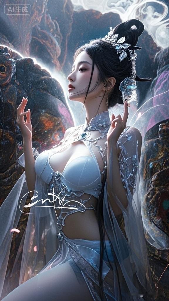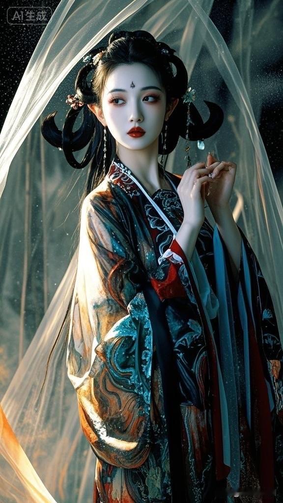 梦幻古风少女,轻盈纱裙,古典韵味十足