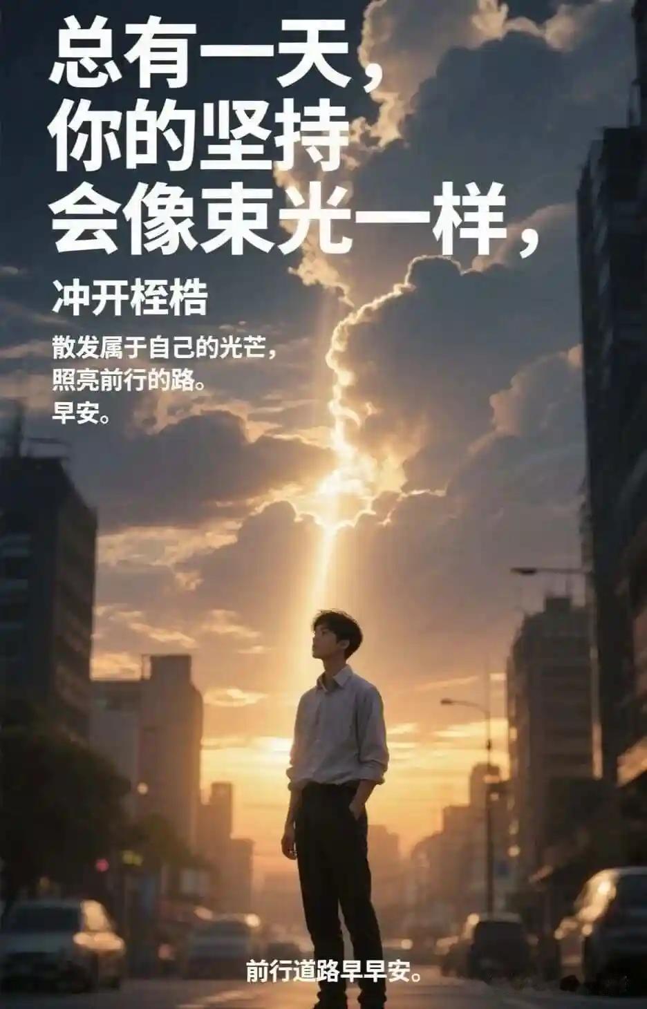 坚持梦想,总有一天会闪闪发光。 坚持梦想,总有一天会闪闪发光。这句话像是一束穿透迷雾的光,照亮了无数心怀梦想的普通人。或许你曾在深夜里反复问自己:我的梦想到底还能坚持多久?是不是只是幻想?但正是这份坚持,塑造了无数平凡中的不平凡。 在这个快节奏的时代,我们习惯了被“成功”的标准绑架:一夜成名、财富自由、光鲜亮丽的生活。但真正令人动容的,往往是那些在平凡中坚守初心的人。他们或许没有惊天动地的成就,但他们用行动证明:梦想不是虚幻的泡影,而是可以通过坚持一点点累积成光的火花。 我曾遇到一个普通的快递员,每天穿梭在城市的大街小巷。有人说他只是个普通人,没有什么特别的。但他告诉我:“我有一个梦想,就是有一天能开一家属于自己的咖啡店。”每天的奔波,似乎都在为这个梦想添砖加瓦。有人会说:“这不现实。”但他没有放弃,他相信,只要坚持,总有一天会到达。 这些故事让我们看到,人性中最深处的那份执着与希望。其实,每个人的内心都藏着一个梦想,只是我们是否有勇气去追逐,是否愿意在困难面前坚持到底。梦想的光芒,正是在无数次的跌倒与爬起中逐渐明亮。 更重要的是,梦想的闪光,不仅仅属于自己。它还能点亮身边的人,激励更多人勇敢追梦。你是否也曾在低谷中迷失,但依然相信未来会更好?你是否也在坚持着那个曾经炽热的梦想?也许,今天的你还没有到达终点,但只要你不放弃,梦想的光就会在某个不经意的瞬间照亮你的人生。 所以,不要轻易放弃。也许你会遇到挫折,也许会有人质疑,但请相信:坚持的力量,远比你想象中更强大。只要心中有光,前方的路就不会黑暗。每一份坚持,都是在为未来的闪耀积蓄能量。 让我们都成为那个即使在风雨中也不低头的人。因为,梦想终会在坚持中绽放最耀眼的光芒。相信自己,未来可期。 光芒总会有锋芒 梦想 抬头一定会有光 要坚持的意义