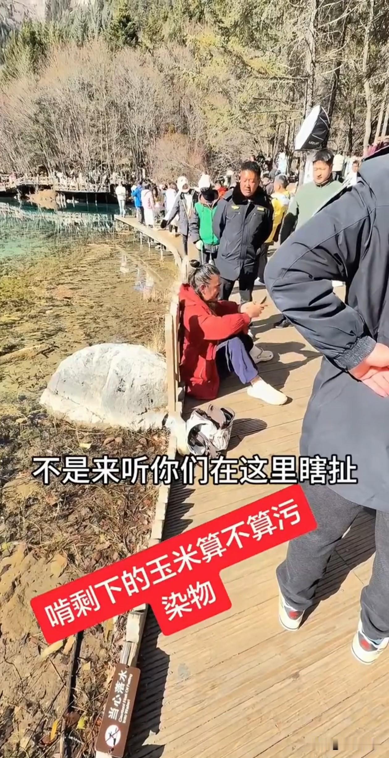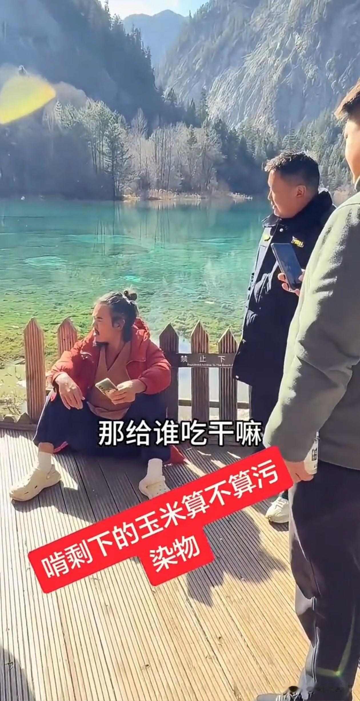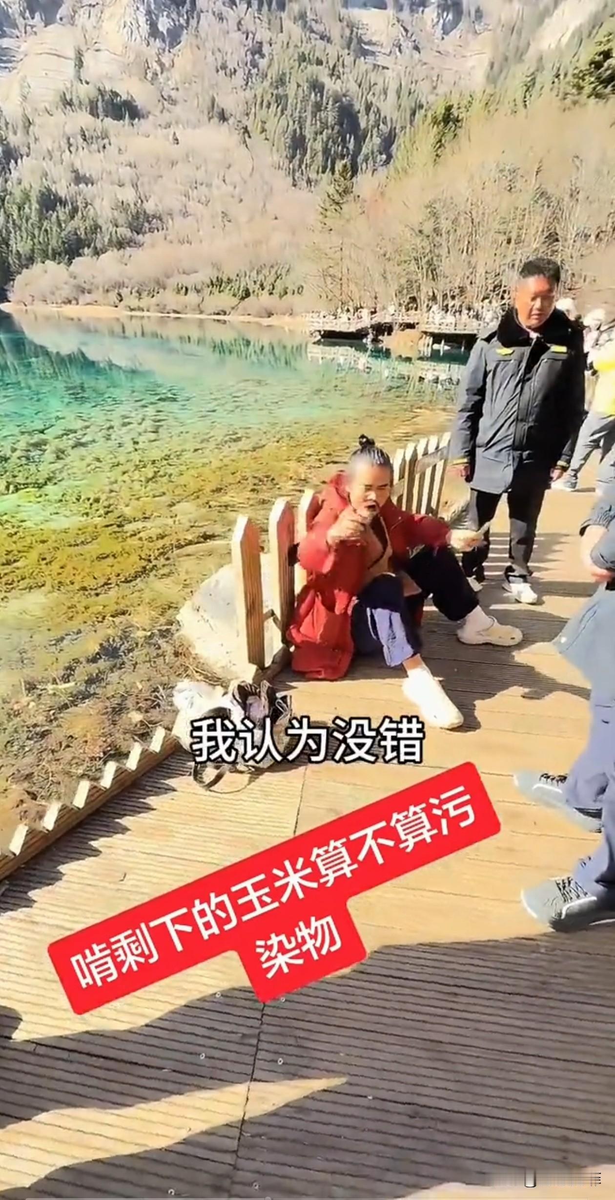 四川,一男子去九寨沟旅游,竟然直接把啃完的玉米棒扔进了水里,一旁的游客看见后,指出他乱扔垃圾,污染环境,但他却认为自己没错,还狡辩说,大自然的东西回归大自然很正常。 一位穿红衣服的男子,手里拿着一根煮玉米在啃,没想到,他啃完后就随手把玉米棒扔进了清澈的水里。 旁边有位游客看到了,就上前提醒他:这么美的地方,怎么能往水里扔垃圾啊,附近就有垃圾桶啊! 本来一句善意的提醒,没想到男子情绪特别激动,当场扇了自己一巴掌,还反过来怼游客:这玉米是大自然长出来的,扔回大自然里有啥错?要是这玉米有污染,景区为啥要卖给我吃?态度嚣张,丝毫不觉得自己有错。 周围的其他游客看不下去了,也纷纷帮着劝说,可男子油盐不进,直言:我在家吃完玉米,都直接扔地里,我花钱买票,不是来听你们说教的。 后来执法人员来了,按规定罚了男子200元,还让他在景区做了30分钟的环境维护。 当天下午,九寨沟景区也出面回应,说景区里早就规定了,严禁往池子里扔任何垃圾,男子的行为就是违规的,本质就是个人素质问题。 景区还表示,以后会多派人巡查,并加强对文明旅游的宣传,避免再发生这种事。 九寨沟的生态环境特殊,水温低、微生物少,玉米棒分解要大半年甚至更久,还可能让水质变差,破坏生态平衡,绝非小事。 对这种对不文明行为的及时制止很有必要,要是没人管,只会让更多人无视景区规则,只有大家一起监督,才能守住公共美景。