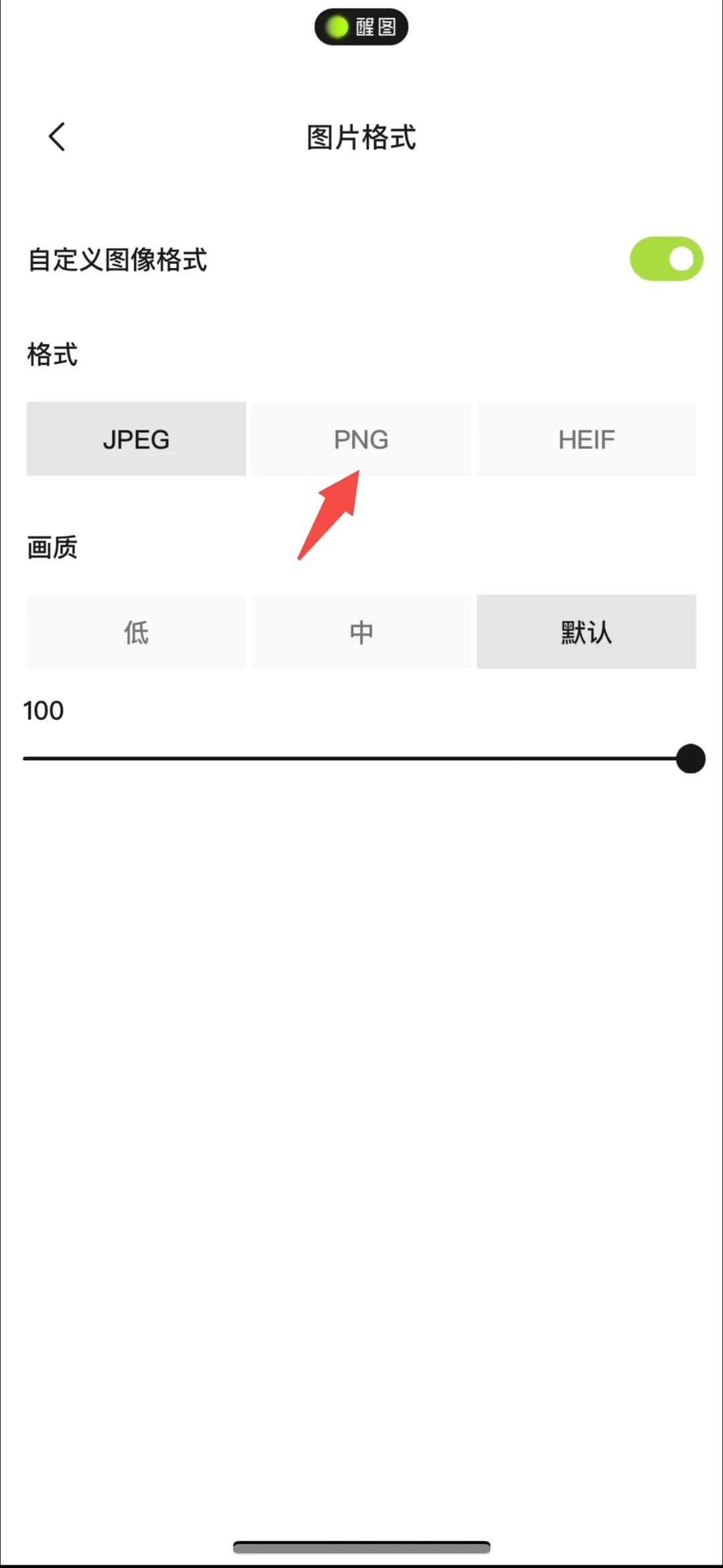 6⃣找到 左上角三条杠 👉🏻 图片格式 「格式自定义」 ✅选择PNG格式