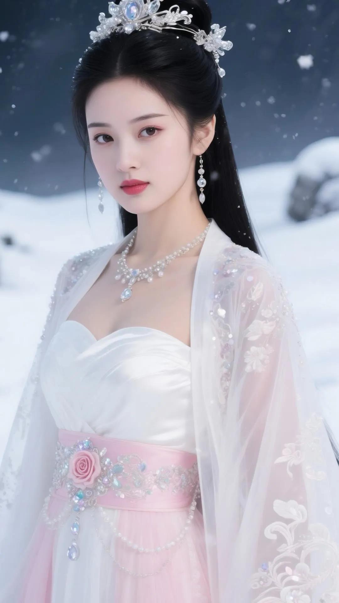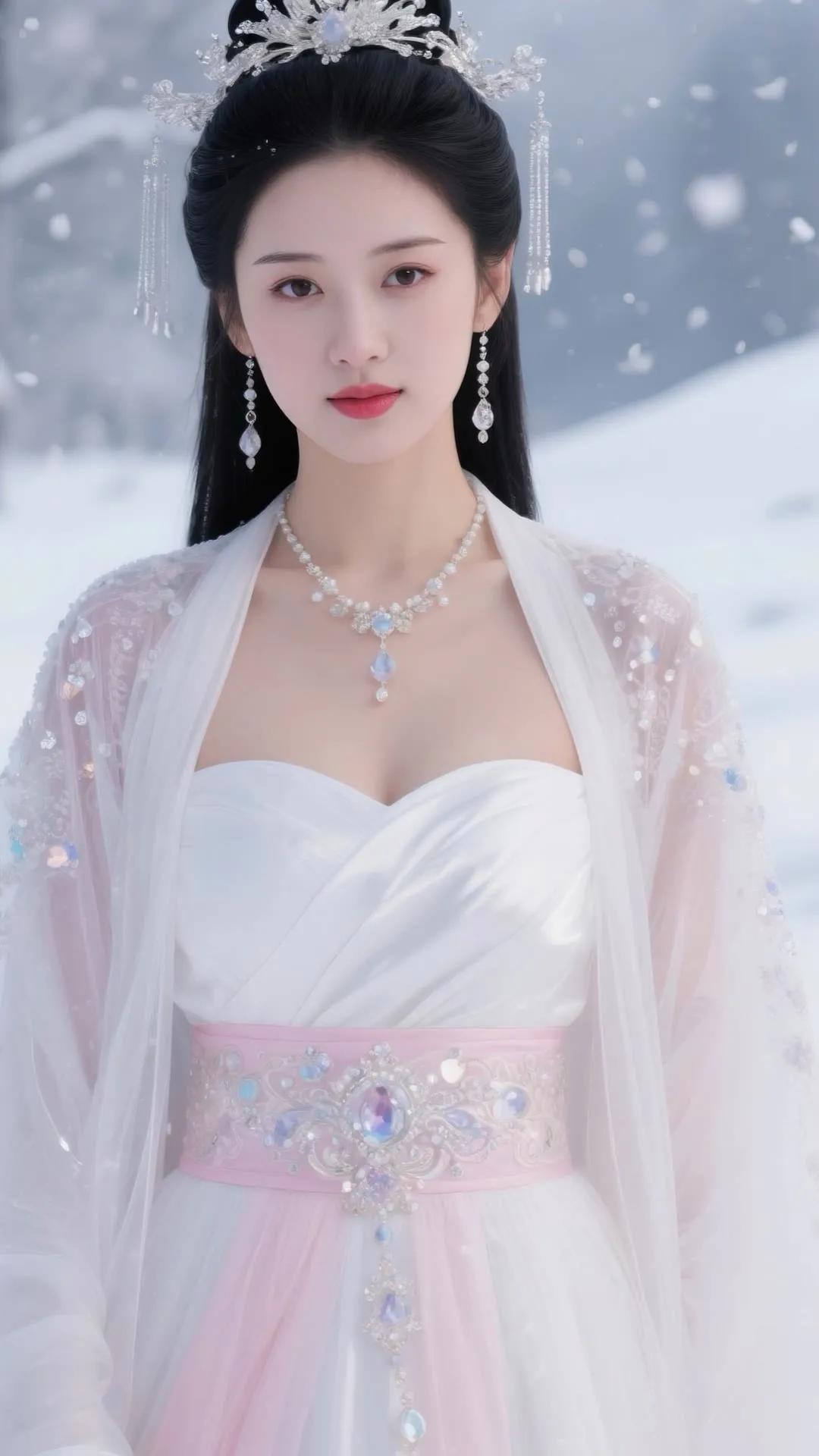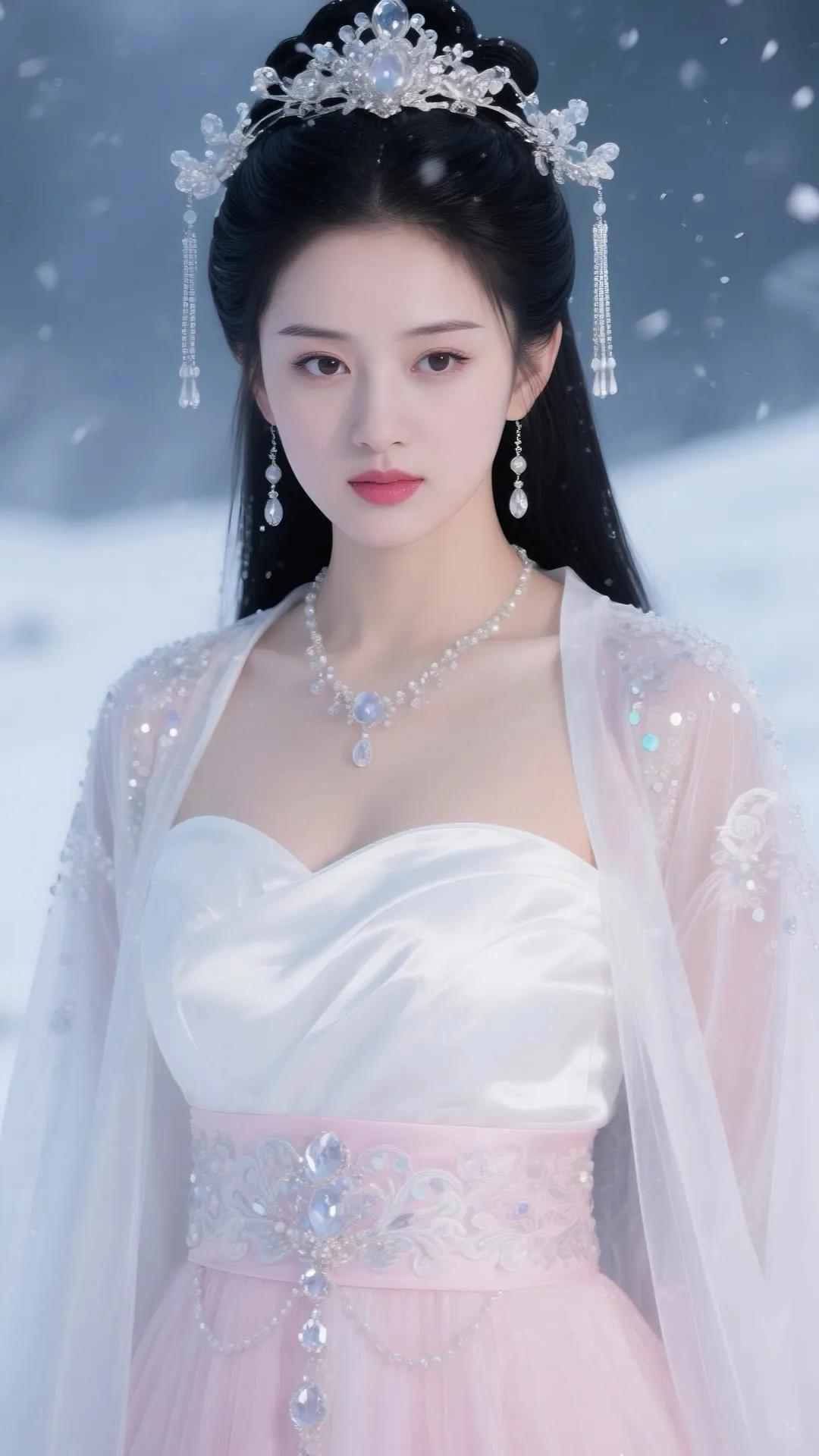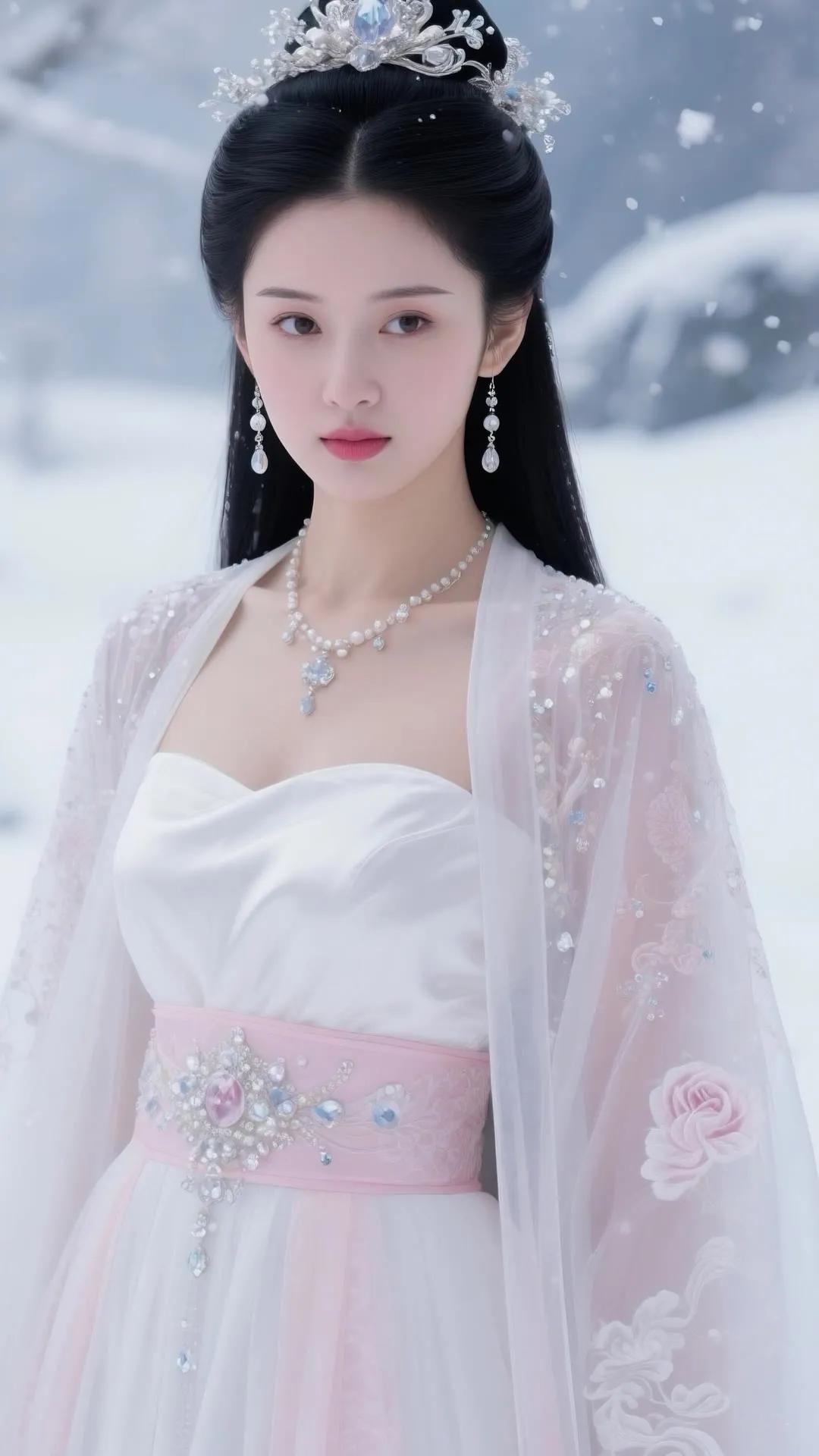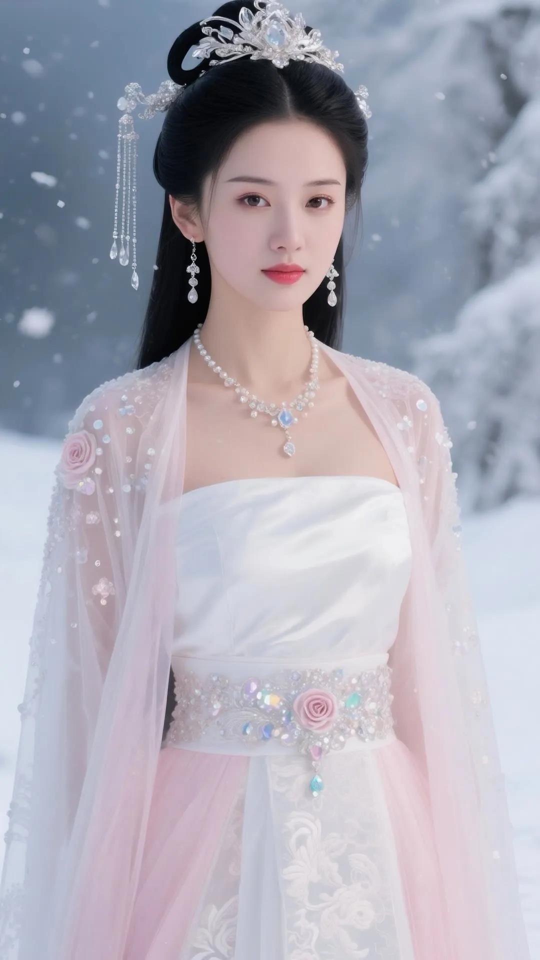 冬日仙境中的梦幻公主,雪中漫步,宛如童话故事中的公主。