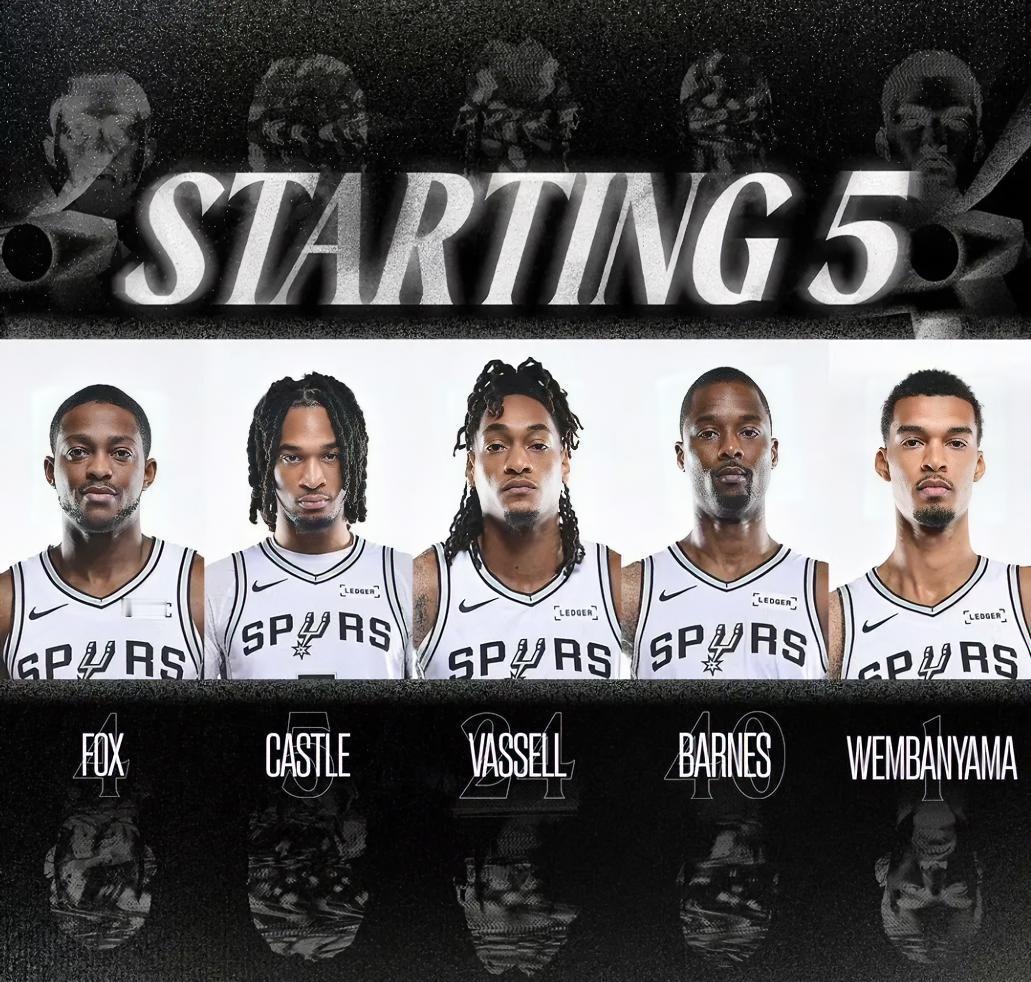 天赋满满!!新赛季打到目前,马刺球员表现情况!! 1. 文班亚马,球队得分王、篮板王、盖帽王。场均26.2分12.9篮板4助攻1.1抢断3.6盖帽,投篮命中率50.2%。 2. 福克斯,球队二号得分手。场均24分3.8篮板6.3助攻1.4抢断0.3盖帽,投篮命中率48.6%。 3. 卡斯尔,球队助攻王、抢断王。场均18.1分6篮板7.3助攻1.5抢断0.3盖帽,投篮命中率49.7%。 4. 瓦塞尔,球队四号得分手。场均15.4分3.7篮板2.5助攻1抢断0.5盖帽,投篮命中率43%。 5. 巴恩斯,球队五号得分手。场均13.5分3.4篮板2.2助攻1抢断0.2盖帽,投篮命中率48.9%、三分命中率43.4%。 6. 哈珀,球队六号得分手。场均13.4分3.1篮板3.9助攻0.9抢断0盖帽,投篮命中率48%。 7. 凯尔登,球队七号得分手,投篮命中率队内最高。场均13.1分6.6篮板1.7助攻0.8抢断0.1盖帽,投篮命中率57.4%。 8. 尚帕尼,球队八号得分手。场均11.4分5.5篮板1.5助攻1抢断0.5盖帽,投篮命中率43.3%。 9. 科内特,场均7.7分6.3篮板2.3助攻0.3抢断1.5盖帽,投篮命中率62.5%。