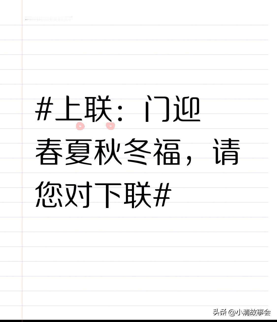 看到“门迎春夏秋冬福”这个上联,我第一反应就是经典下联“户纳东西南北财”。“门”对“户”,都是家里进出的地方;“迎”和“纳”都是接收的动作;“春夏秋冬”是四季,“东西南北”是四方,对仗工整得没话说。 上下联连起来,那画面感一下就有了,家门迎接着四季的福气,家宅收纳着四方的钱财,多美好的寓意啊,谁不希望自家能这样兴旺富足呢。而且这副对联平仄和谐,读起来朗朗上口,过年贴在门上超合适。