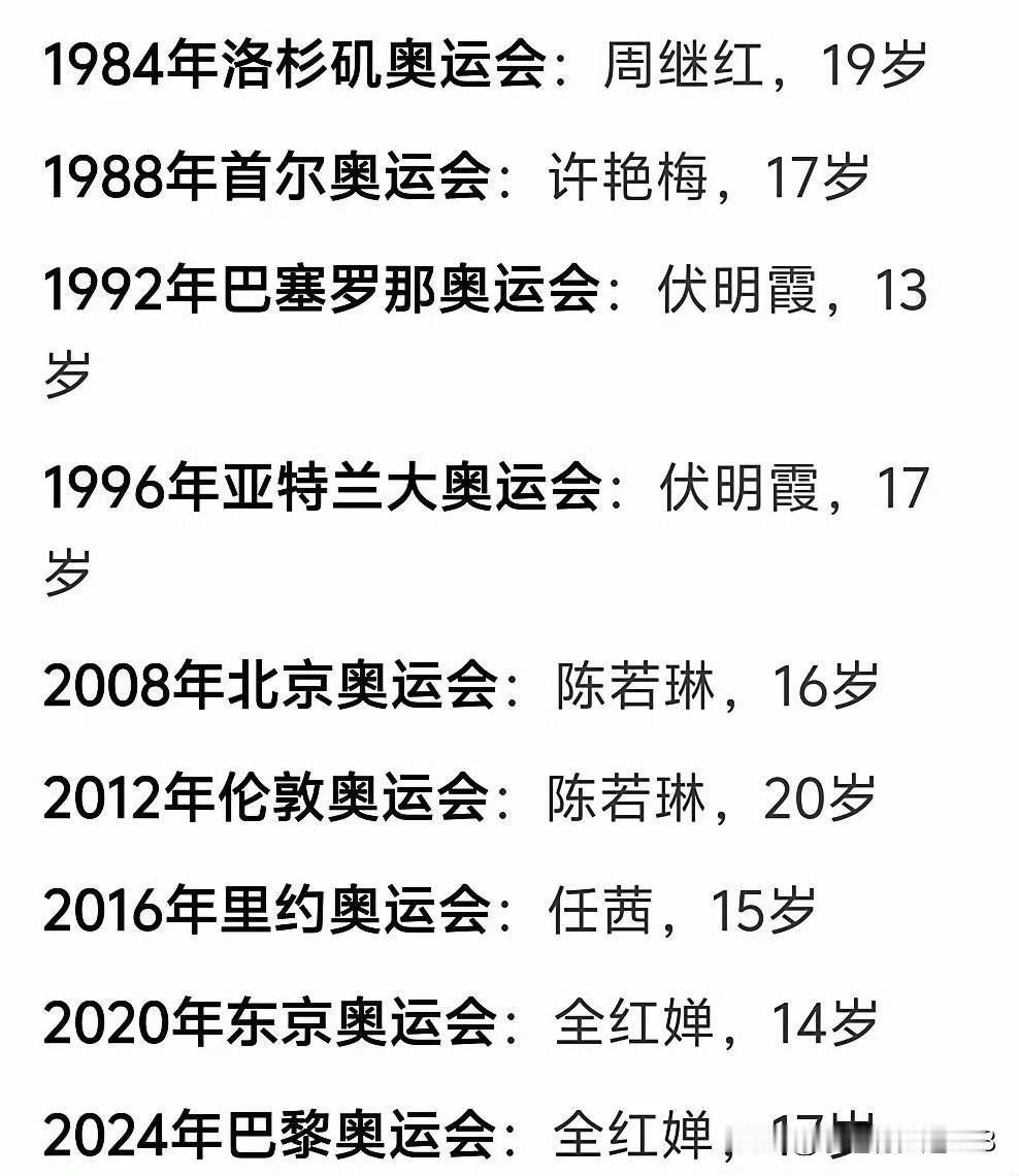 从图表上看陈芋汐要想要拿到洛奥会女单冠军也非易事! 因为四十年还没有一个20岁以上的跳台冠军。 三年后的奥运会陈芋汐就23岁了,估计她也难打破规律。 大家觉得陈芋汐能否打破20岁以上没有奥运冠军的历史记录呢?