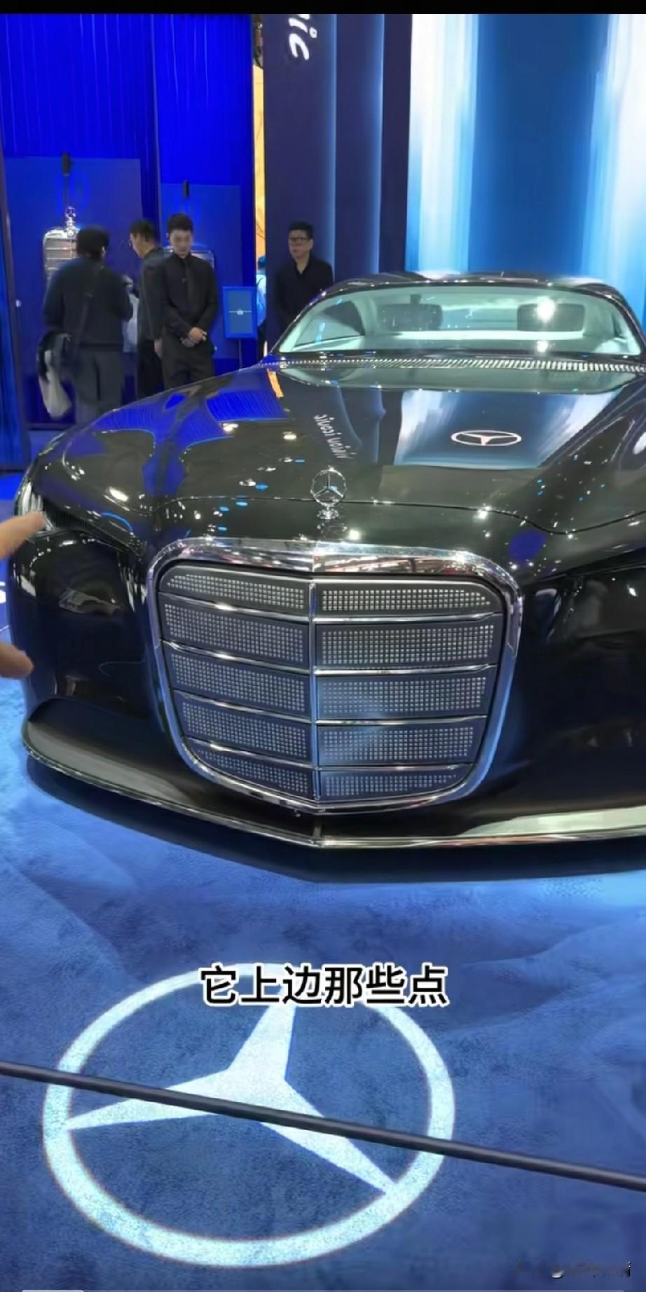 据说这是广州车展最贵的一辆车, 它就是奔驰的这款车, 奔驰还专门为它办过一场时装秀, 这辆车的名字叫做vision iconic, 这辆车的前脸格栅特别的独特, 它的旁边还有很多介绍奔驰格栅的历史, 其实推出这款车就是为了把奔驰的格栅彰显出,网上都说这辆车比较丑, 现实中很多人都来拍了这款车, 这款车的车顶用的是太阳能材料, 还搭载了模拟人类大脑运转的神经形态计算系统,这车还是相当先进, 很多人嘴上说他不好, 但是身体都很诚实, 都来在拍这款车了, 大家觉得这款车怎么样?