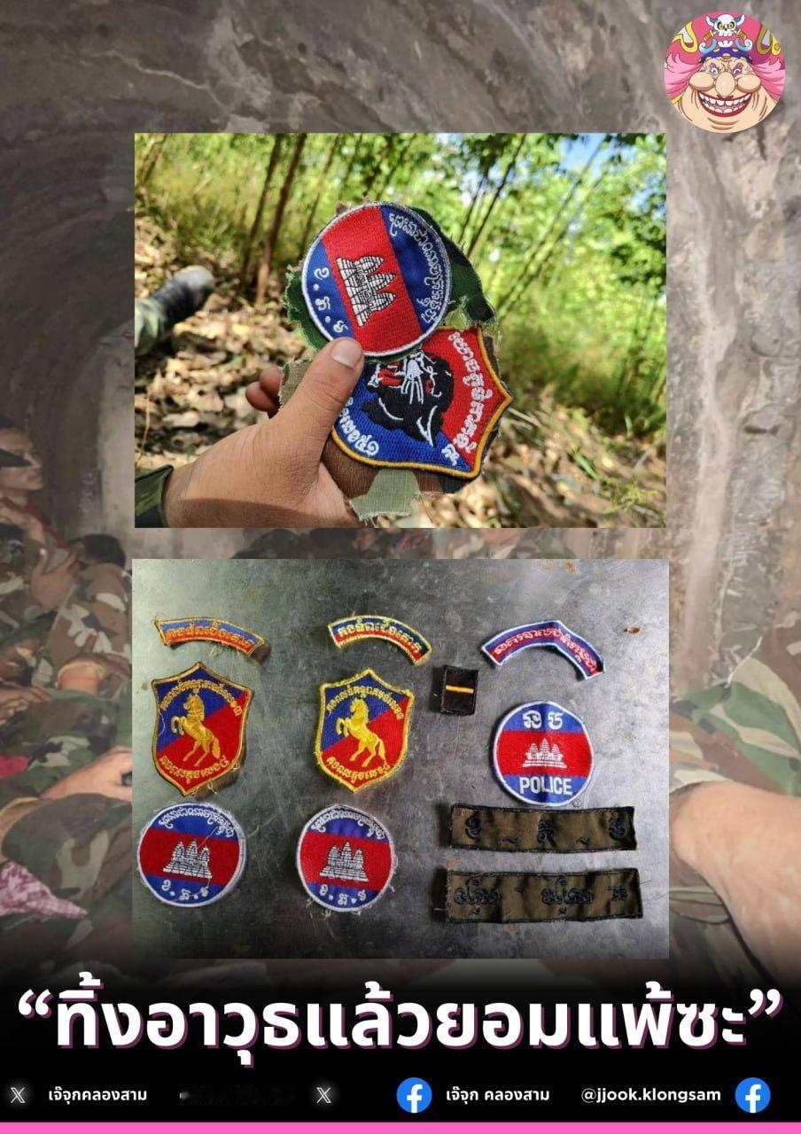 “放下武器,投降吧。”泰军收集了战死柬埔寨士兵的臂章。看来柬埔寨军队的伤亡不小,毕竟武器和战力不在一个等级