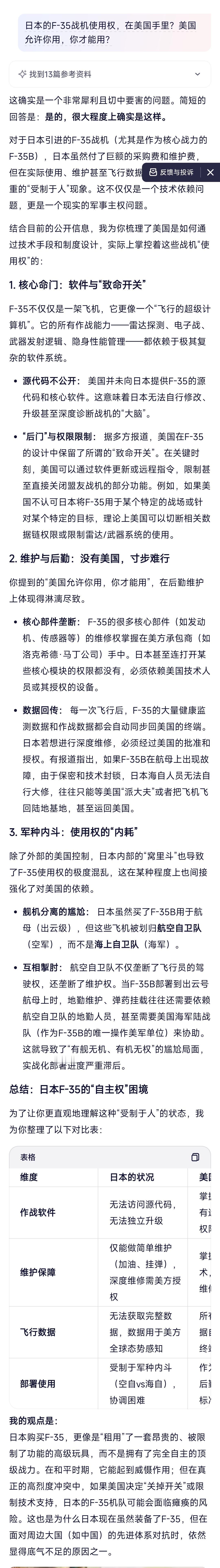 12月10日,美国前参谋长联席会议主席马克米利称:日本购买的60架F-35战机,起飞权限完全受制于美国,需获得美方许可后方可升空。而美国绝不会允许F-35战机执行其不愿看到的任务。 F-35战机源代码、后门与权限限制、核心部件、数据回传都在美国手里。 连日自卫队内部也有鄙视链。虽然F-35B战机是为日舰出云号买的,但这些飞机被划归航空自卫队(空军),开飞机、地勤维护的都是驻舰的空自队员,而不是海上自卫队(海军)。 日本终于沦落到巴基斯坦一级的水平,美国不让你升空,你就不能升空。花费巨资租用了一套昂贵的、被限制了功能的高级玩具。 搞半天,鬼子买的F-35是个花瓶,连打酱油都不算。 当然,美国更考虑的估计是要是出来被锁定了、击落了,更难看。以后谁还敢买他家的武器,自己的霸主地位也必将失去。 上次J-16雷达锁定两架F-22,人家兔子就很照顾阿美的面子,没有直接说出是哪个军队、哪个机型型号。 F-35AB的APG81是2010水平的雷达,落后J-15T雷达10年了。你小本子和阿美哪还怎么玩?!