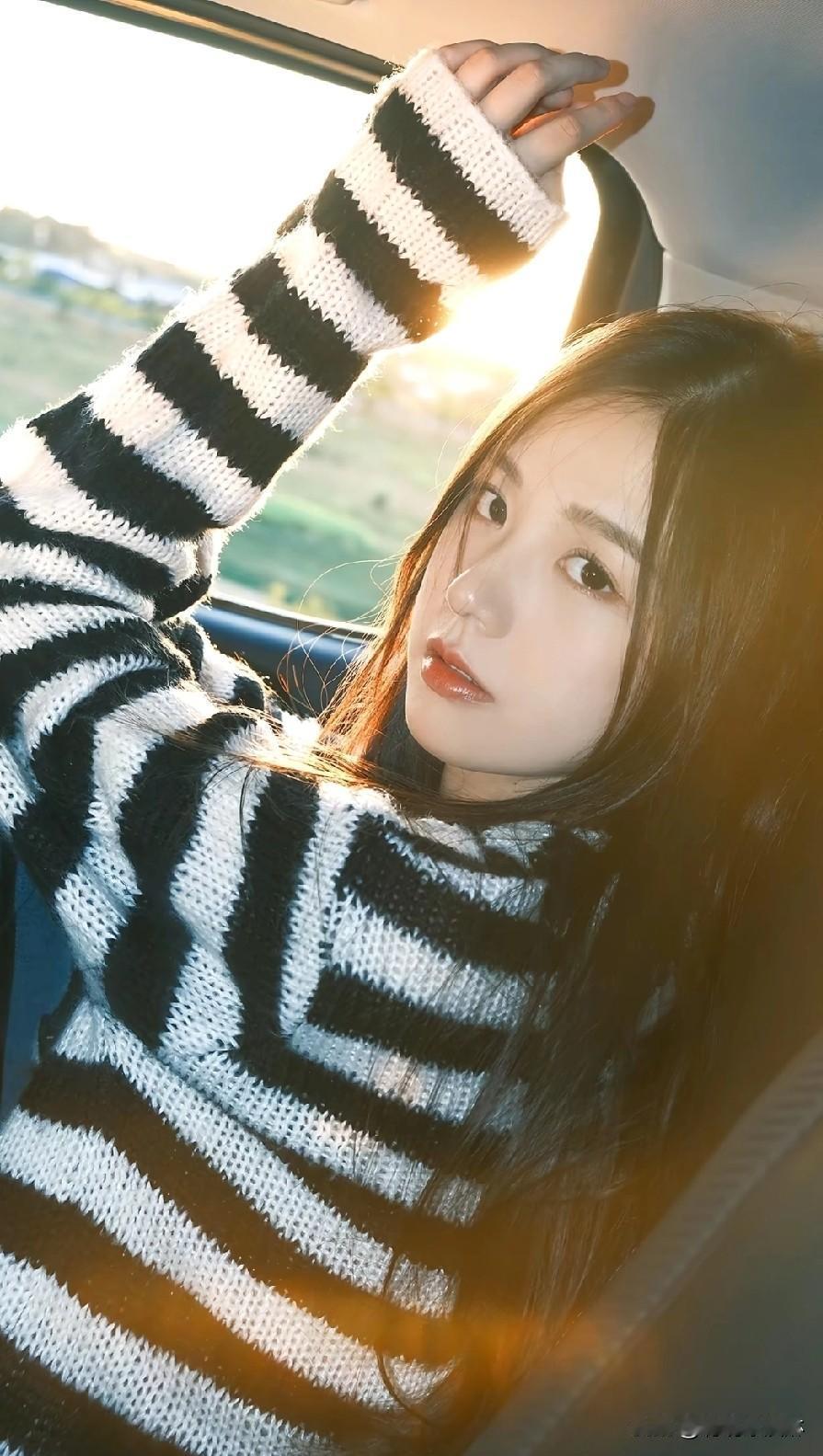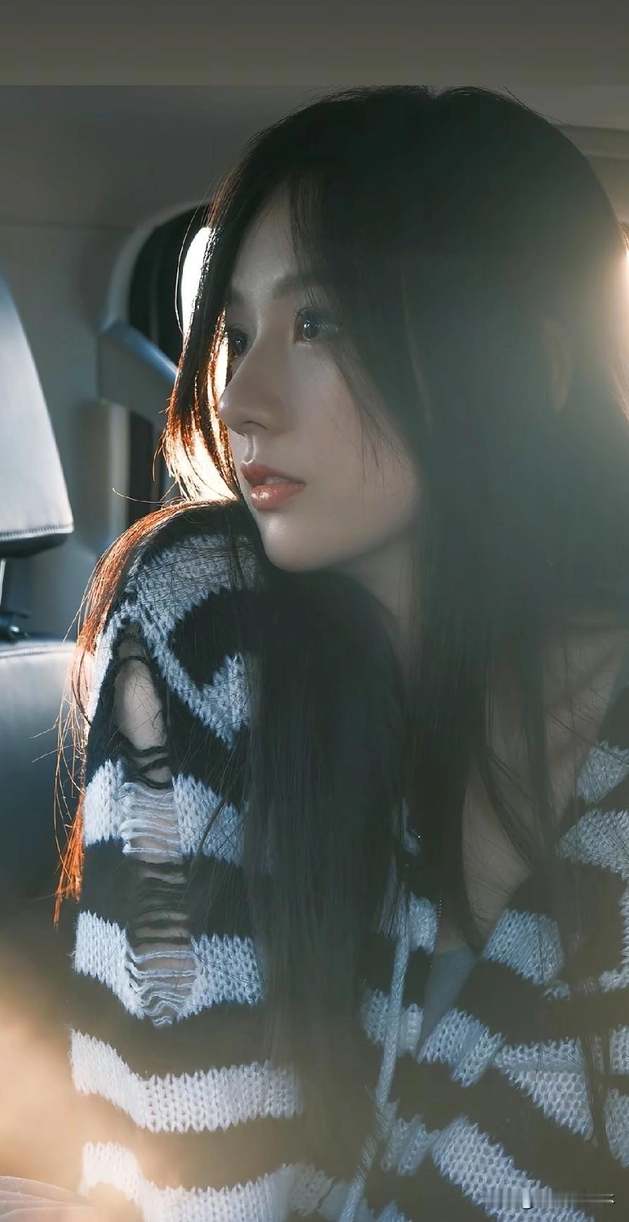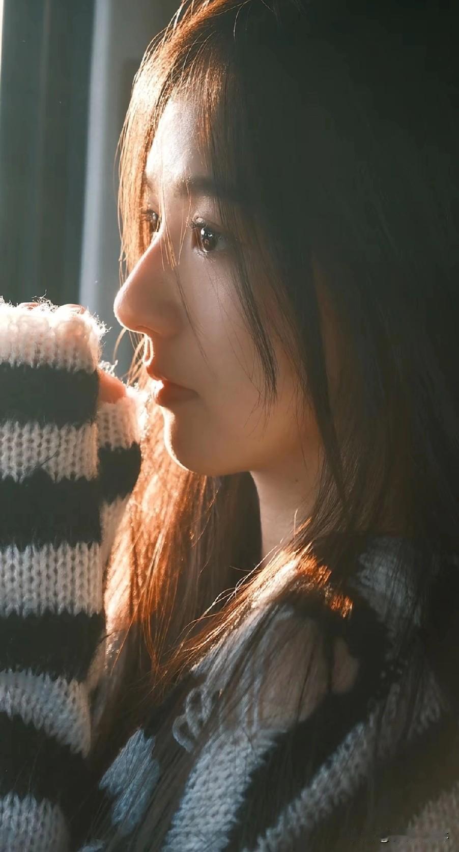阳光洒落,少女侧颜,绿意盎然,静谧美好。