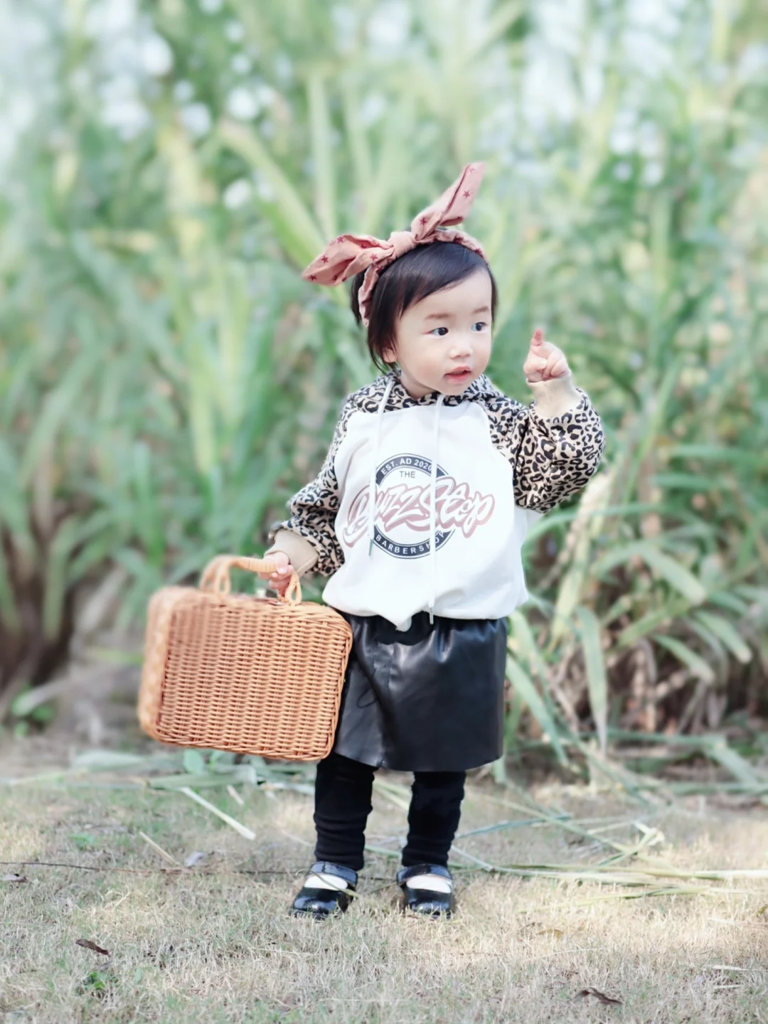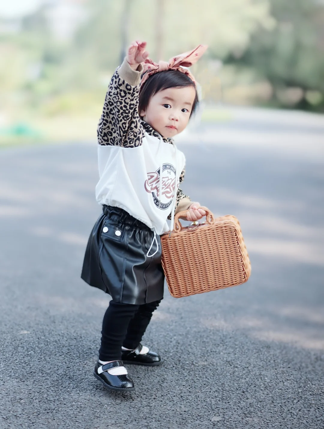 上身的卫衣的帽子和插肩袖融合了豹纹元素,时髦度up up⭐️,下面不论搭配裤子和小裙子都是时尚感满满~黑色小皮裙手感hin柔软,宽松紧腰的设计,胖宝宝瘦宝宝都能轻松驾驭~👌