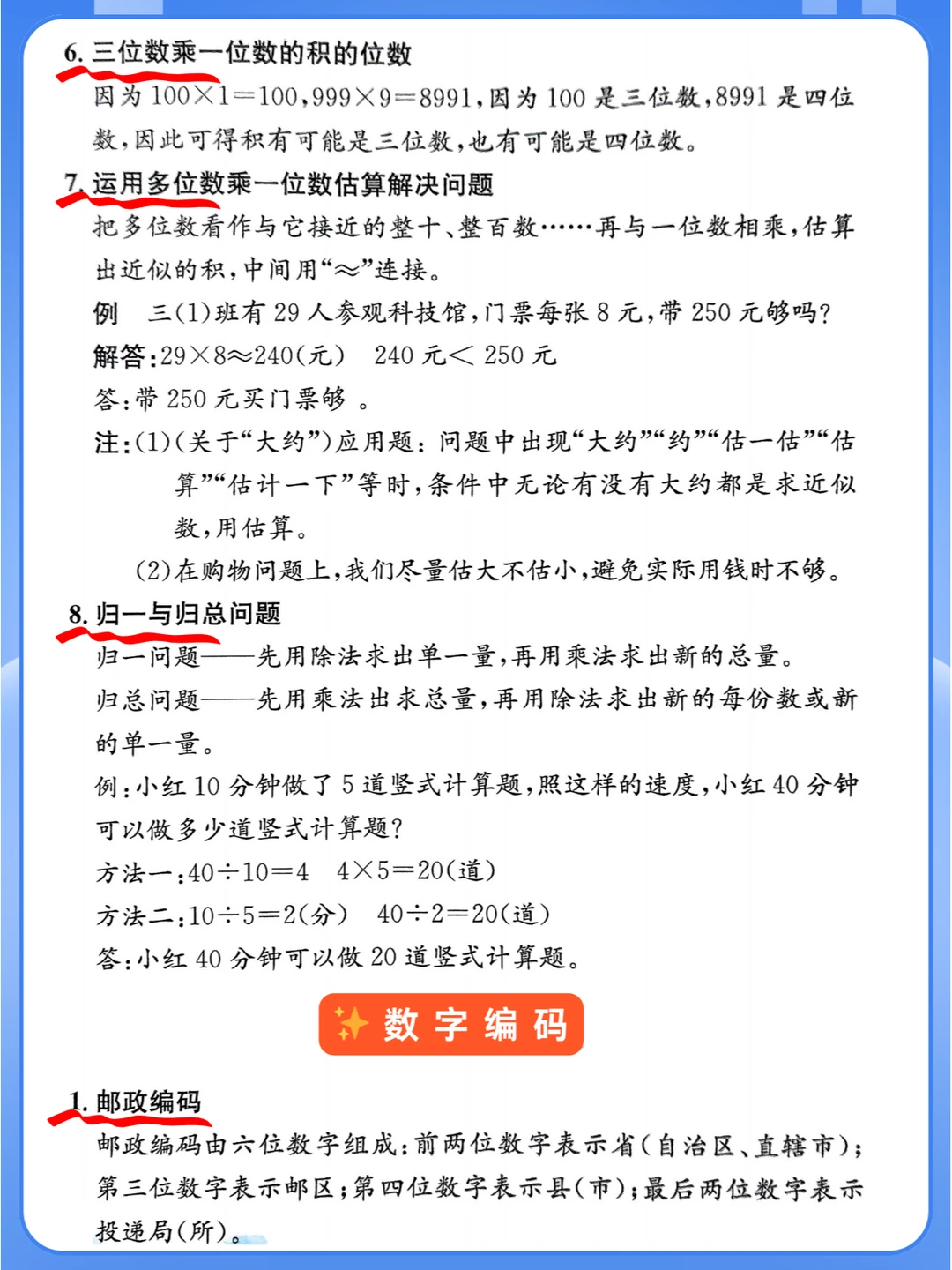 是时候开始期末复习了‼️2024秋季人教版三年级上册数学各单元知识点总结,期末复习你一定用得上✅