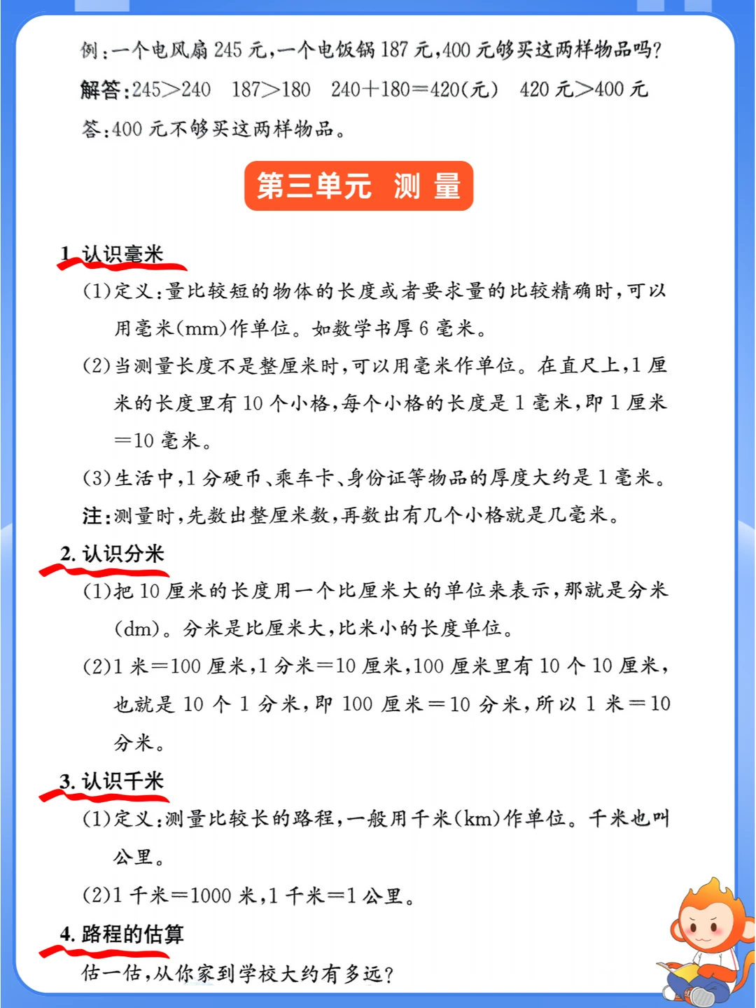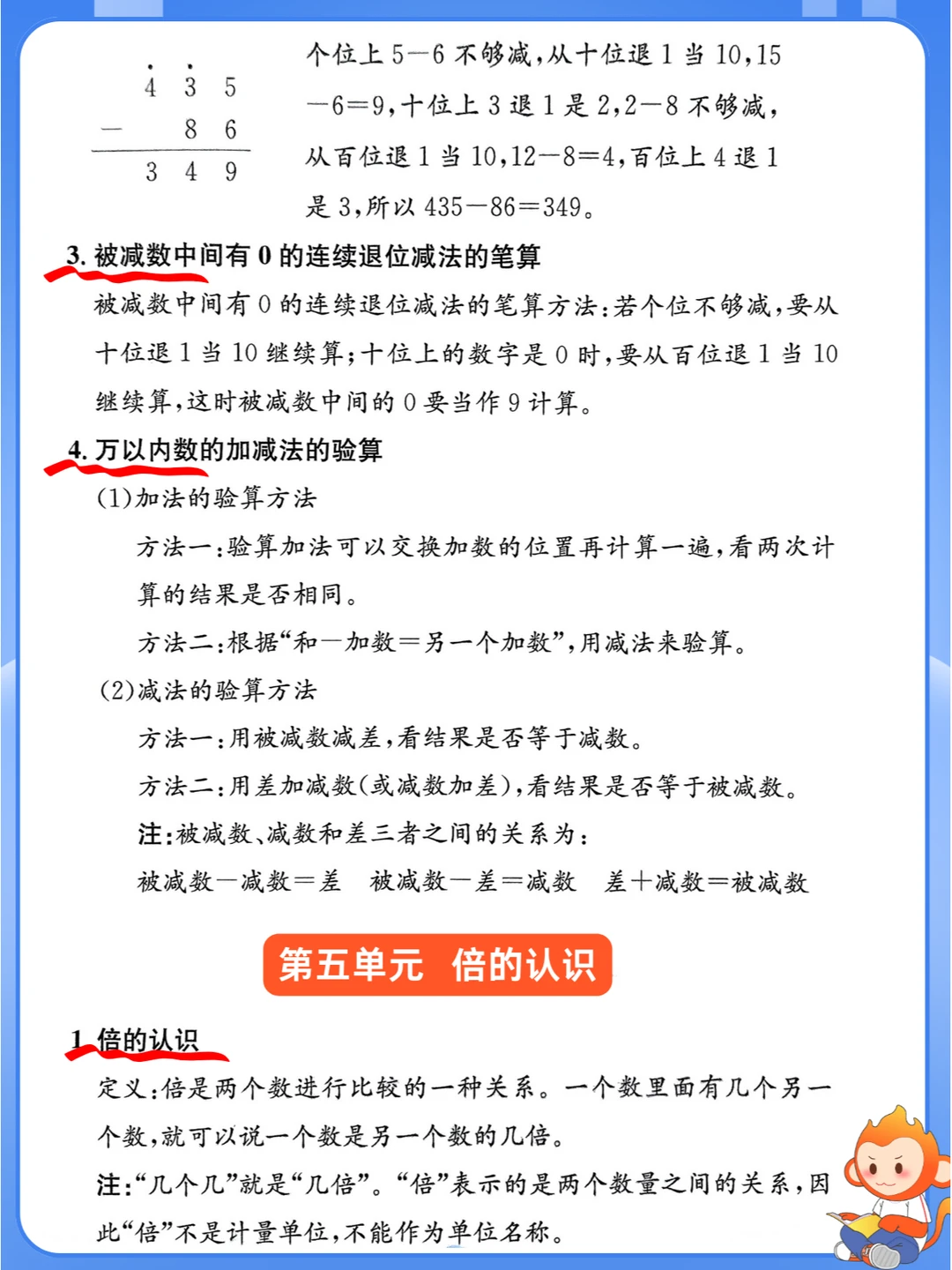 人教版小学数学 三年级期末考试 三年级数学上册知识点总结 三年级数学上册 三年级数学 期末考试复习