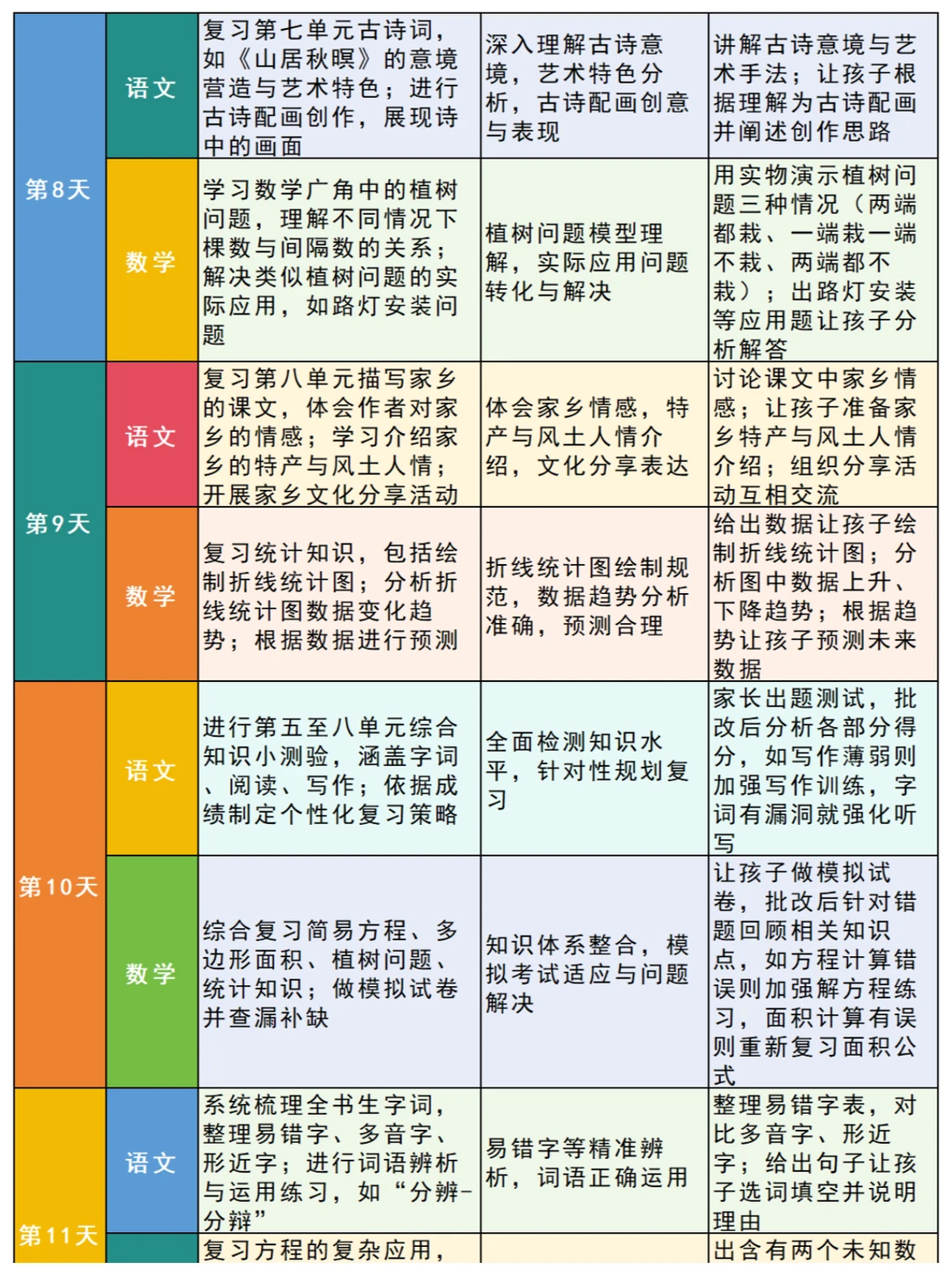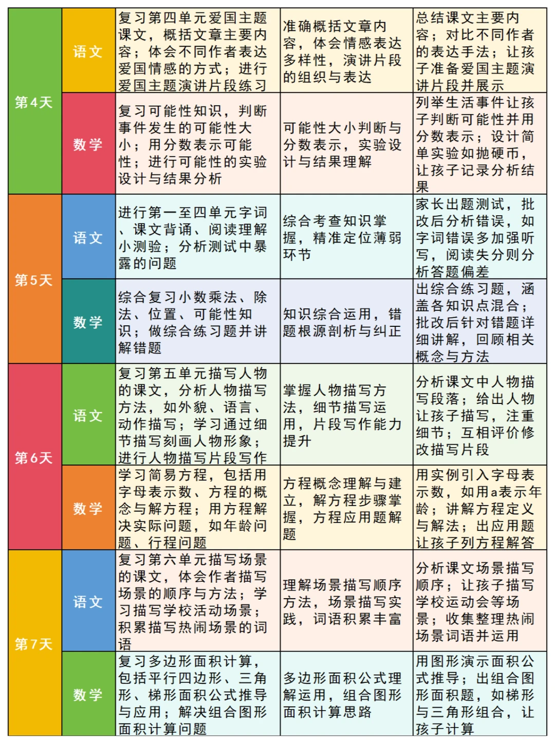 五年级上册语文、数学期末考试复习详细计划,时候该规划期末复习了💪💪