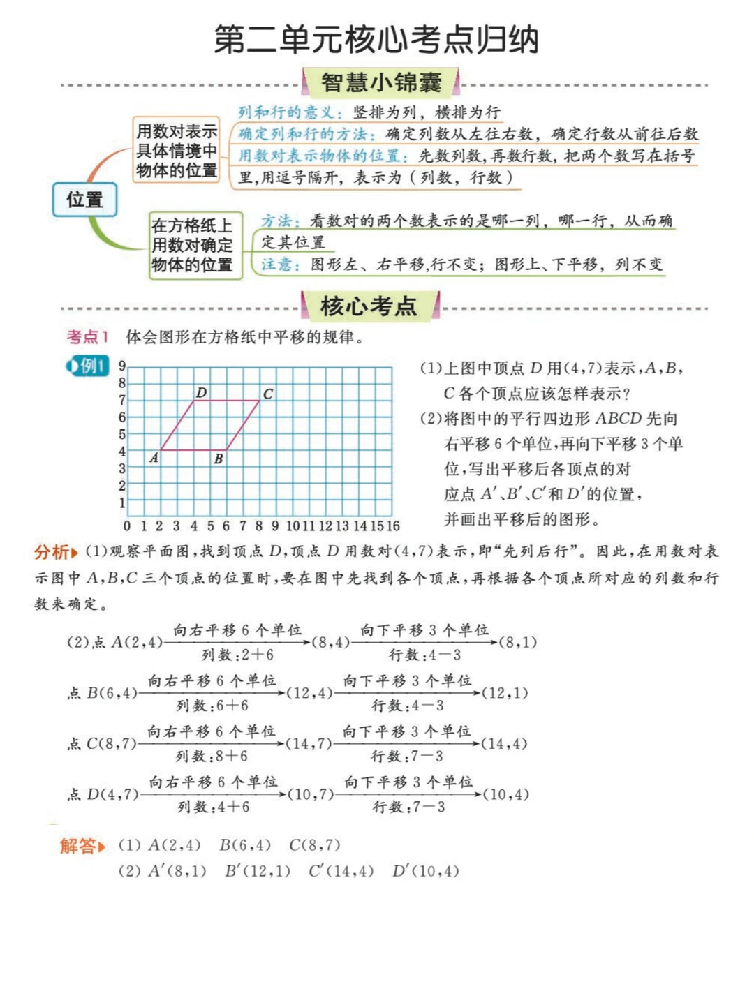 第[二R]单元“位置”:用数对表示物体的位置,如(列数,行数)来精准定位。