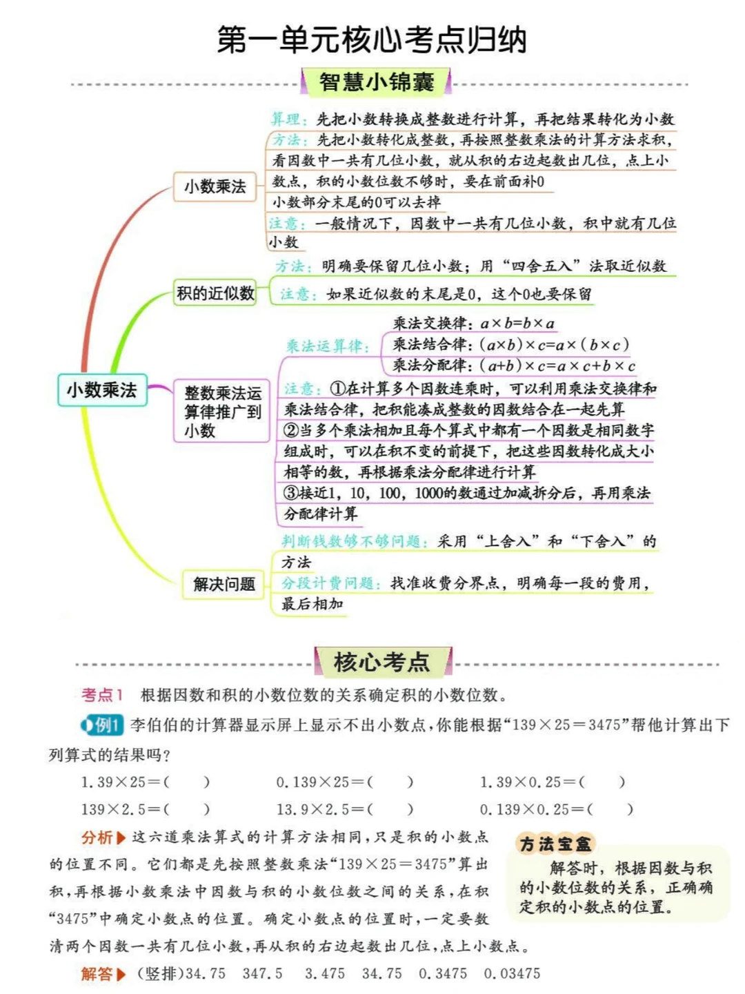 附上人教版五年级数学上册单元知识点导图➕核心考点归纳,带你抓住考试重难点🤩