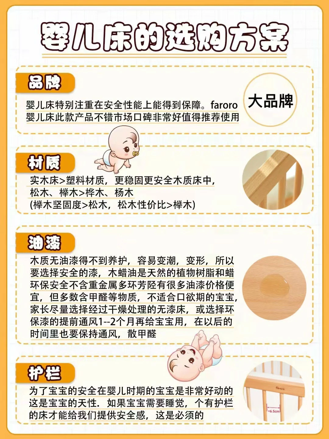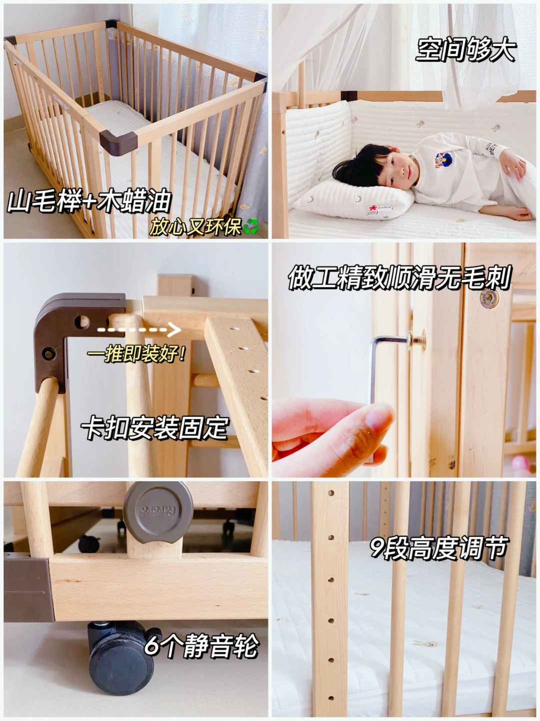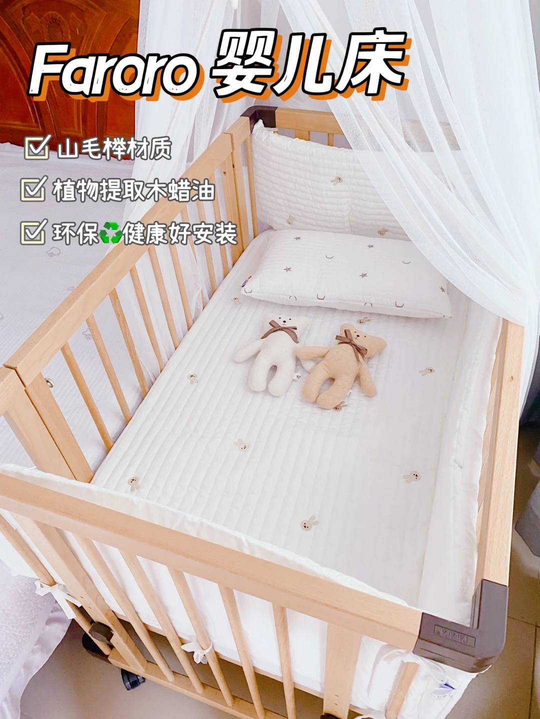 🔅后来老老实实入了Faroro婴儿床,没什么小零件,回到家5分钟就装好了!👍我选的毛山榉材质摸起来坚实又光滑,感觉二胎用完给三胎用也没有问题~而且这款床方便我夜里喂母乳,再也不担心宝宝频繁落地醒了!🤗还可以作为独立的婴儿床,培养自主入睡的习惯,功能很多~一句话,Faroro婴儿床真心值得买!