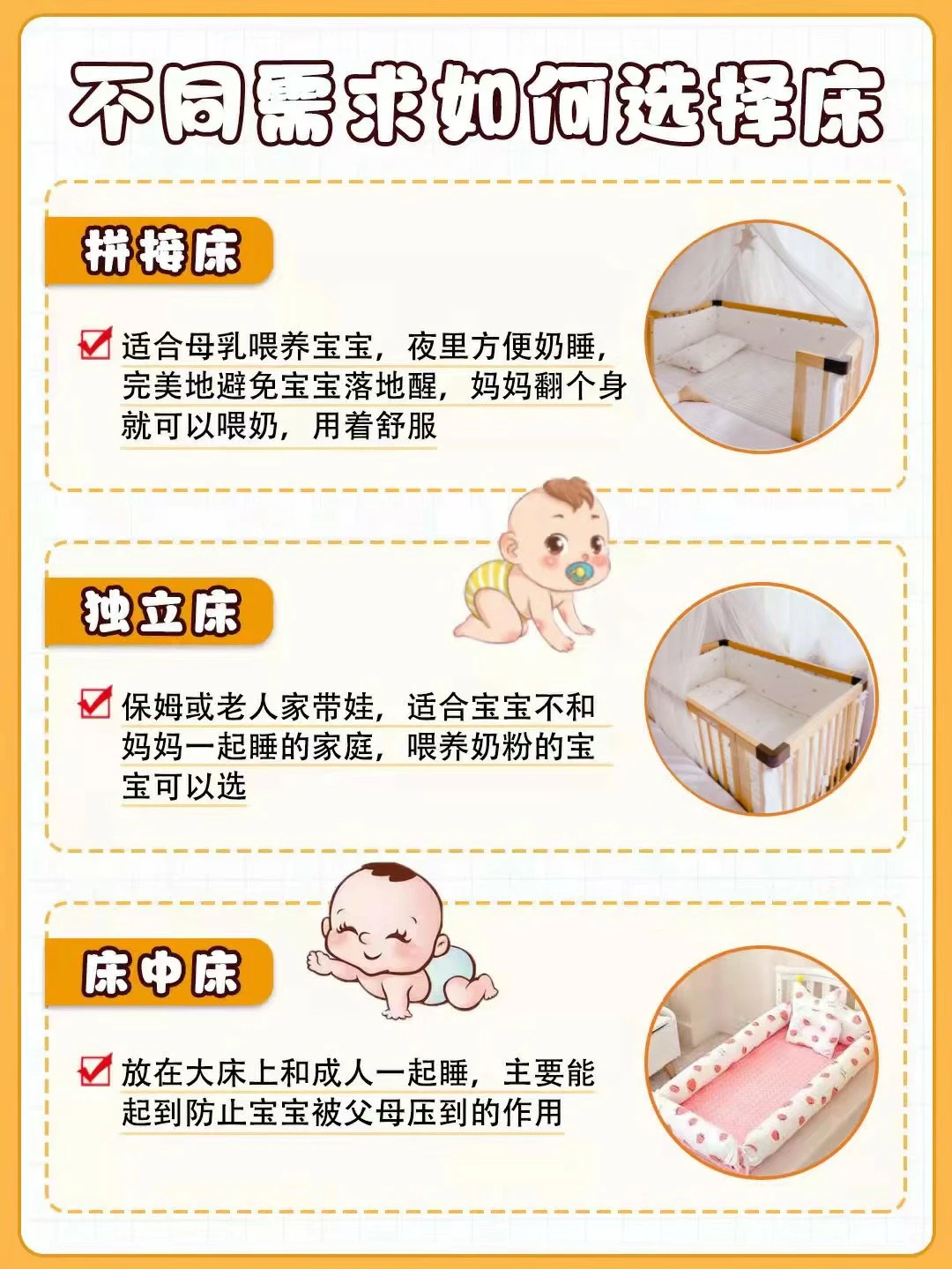 宝宝由老人或保姆带,不需要跟妈妈睡觉可以选这种,最好有滚轮,移动起来方便。