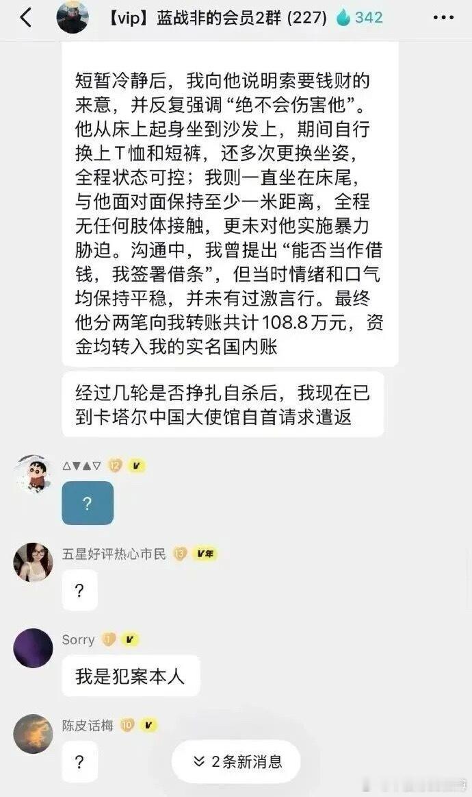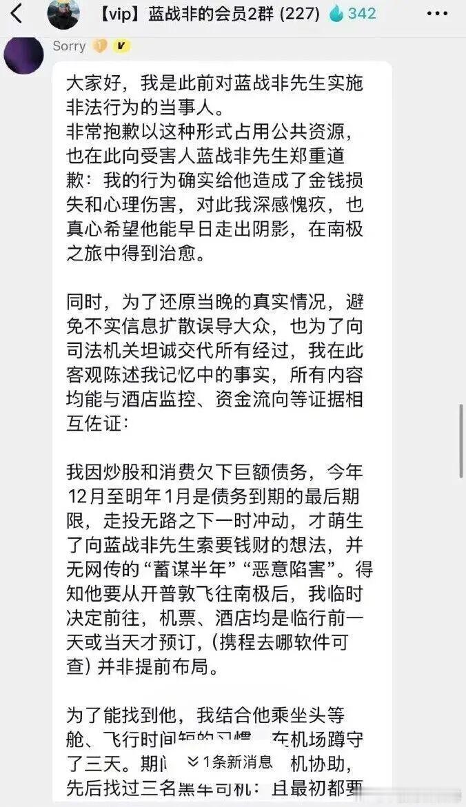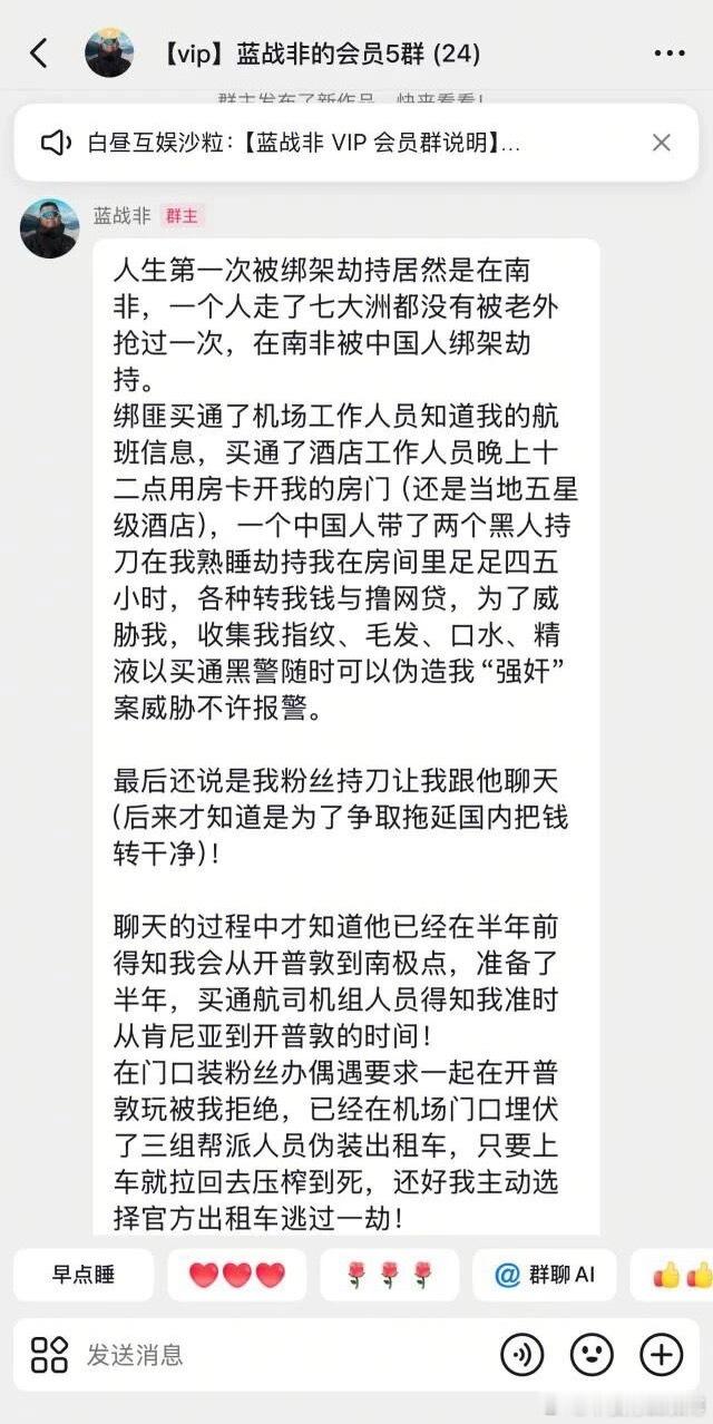 大反转!网红蓝战非“南非绑架案”太癫了。蓝战非这事儿的反转真是一波接一波,之前突然有个人冲进他粉丝会员群,发了千字自首信说自己是绑匪,还说因为炒股欠了债才临时起意,没带刀也没暴力胁迫,甚至说已经去卡塔尔大使馆自首了。结果没等热度降下来,大使馆直接辟谣,压根没这号人投案,纯属瞎编。这闹剧背后,其实是网红商业化走偏的问题。蓝战非的商业化路子很明确,靠 “富豪旅行博主” 人设吸粉变现,炫富说年入九位数,晒五星酒店、环球行程,都是为了强化这个人设,好接高价广告、做直播带货。可这种商业化完全押注在虚头巴脑的人设上,为了流量把自己的财富、行程全公开,不仅引来了不法分子的注意,还得靠争议维持热度。网红搞商业化本无可厚非,但不能本末倒置。与其费尽心机靠夸张人设、争议事件博眼球,不如把心思放在优质内容上。过度依赖虚假人设的商业化,既容易栽跟头,还会消耗网友信任,终究走不长远。热点观点华俊竹有话说