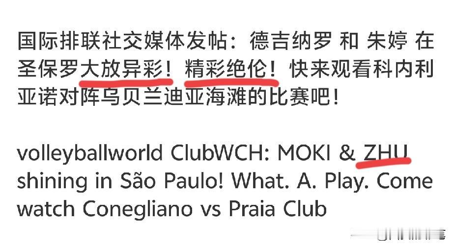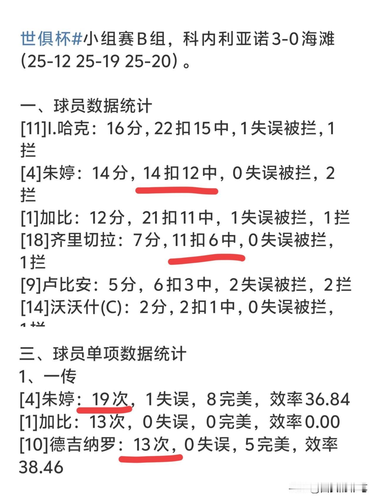 看赛后技术统计,就知道,世俱杯的朱婷有多牛[赞] 没有对比就没有发现,论效率,朱婷的86%远远高于副攻齐里切拉的55%,论一传数量,朱婷的19次大于自由人德吉纳罗的13次,论拦网,她一人的数量持平卢比安。 难怪国际排联发文,用精彩绝伦和大放异彩,这八字盛赞大婷!朱婷 朱婷意甲