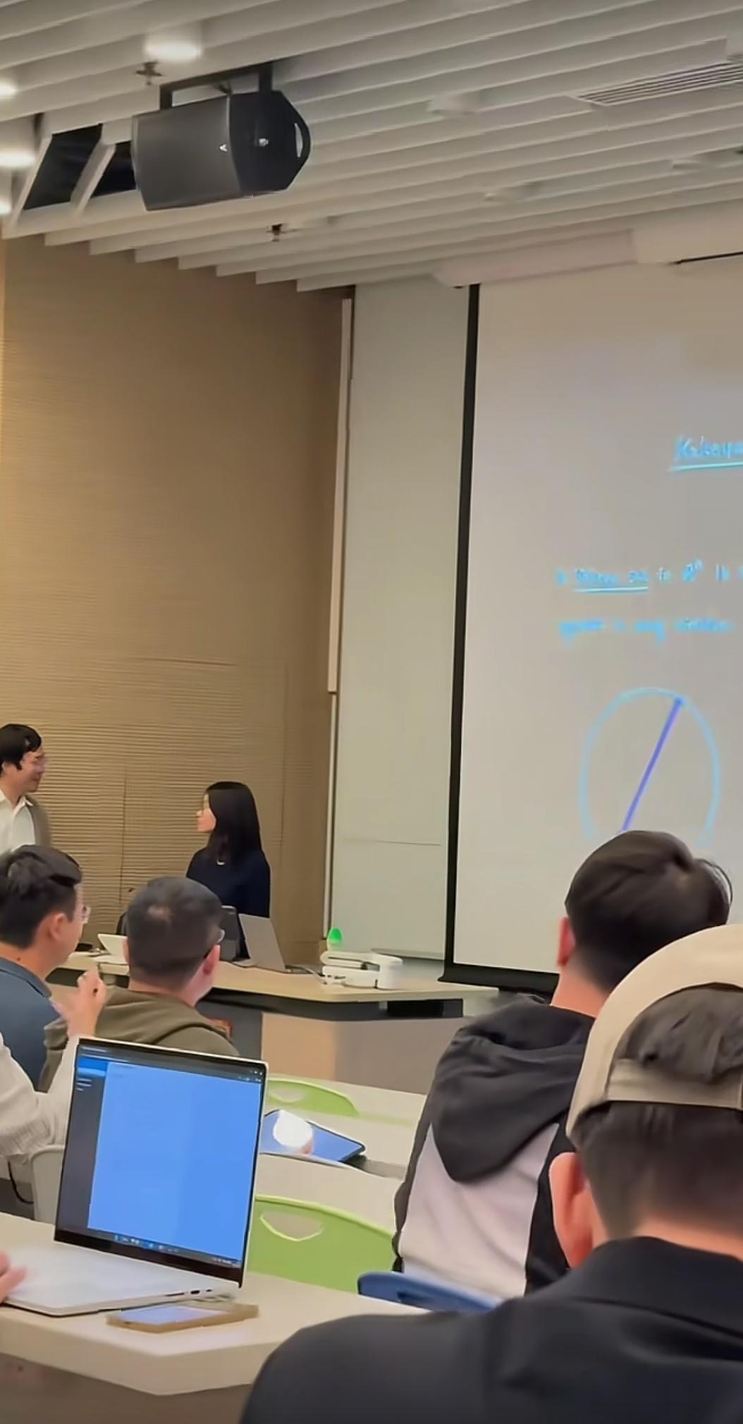 12月,91年出生的数学家王虹现身香港大学进行讲座,现场座无虚席,课堂间隙,有老师上台和王虹进行交流。 王虹作为学者,在数学方面做出了贡献,现在也是全世界各地进行交流研讨,30多岁的她,在数学领域出类拔萃。 香港大学的学生们在认真听讲的时候,有同学拿出手机,拍下了王虹的微表情。
